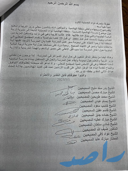 يذكر أن العريضة تؤكد تمسك الأهالي بحق أبنائهم في التعليم الجيد، معربين عن أملهم في استجابة المسؤولين لمطالبهم تحت ظل القيادة الهاشمية الحكيمة.