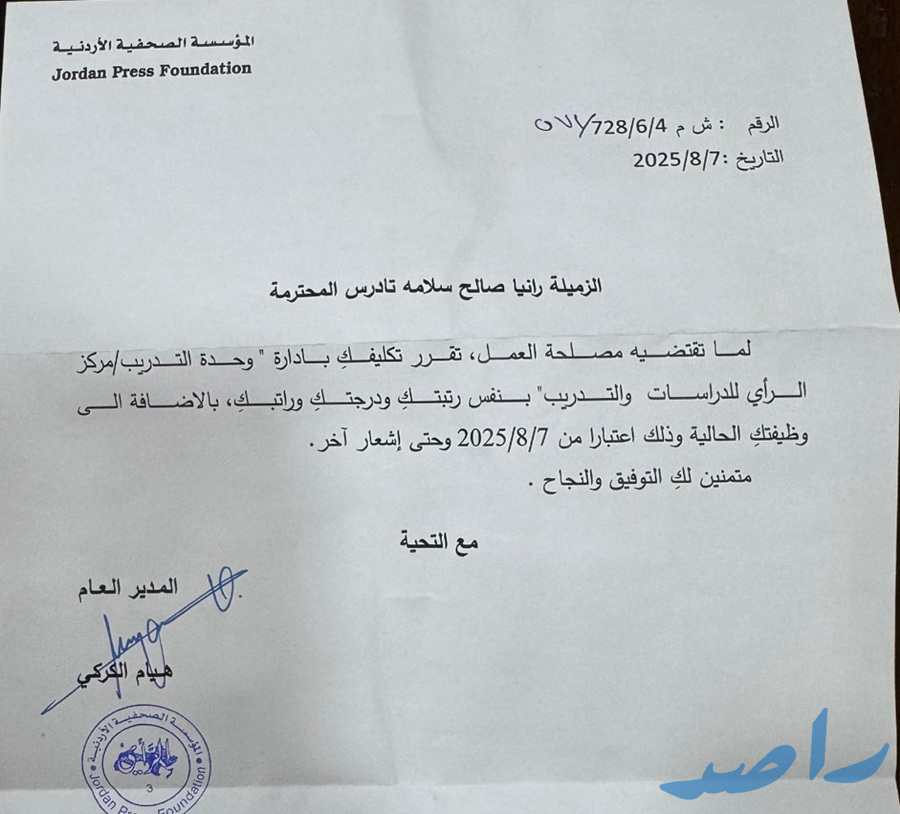 في خطوة جديدة تعكس ثقة الإدارة بالكفاءات المهنية، قررت المدير العام لجريدة الرأي، هيام الكركي، تعيين الزميلة الإعلامية رانيا تادرس مسؤولة عن وحدة التدريب في مركز الرأي للدراسات والتدريب، إلى جانب مهامها الحالية.