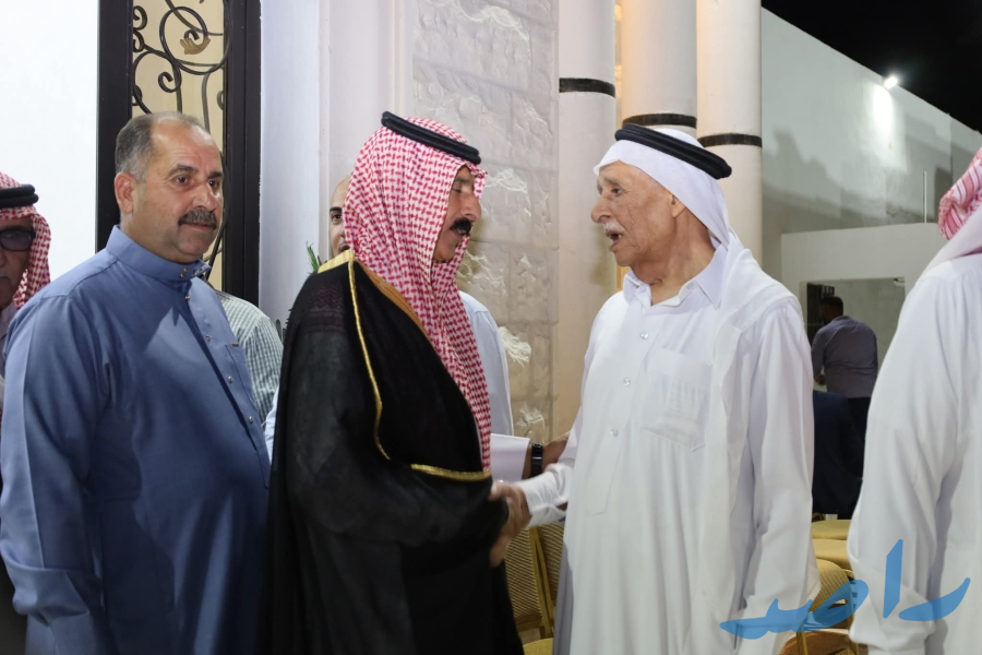 2025/8/16 - السبت - استضاف الشيخ الشايش الخريشا مساء أمس نواباً وشيوخاً ووجهاء من البادية الجنوبية على مأدبة عشاء كريمة في منطقة الموقر التابعة للعاصمة عمّان. وقد شملت الدعوة شيوخاً يمثلون مختلف مناطق المملكة، تأكيداً على أواصر التواصل والوحدة الوطنية.