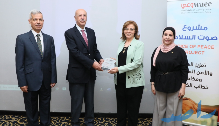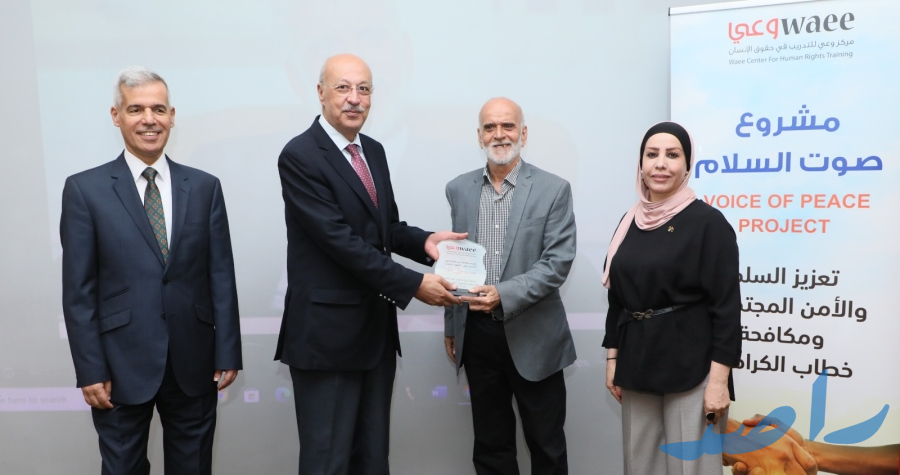 عمّان – تحت رعاية الامين العام لوزارة الاتصال الحكومي مندوباً عنه الاستاذ طه الخصاونه مدير الإعلام الرقمي وإنتاج المحتوى، عقد مركز وعي للتدريب في حقوق الانسان الحفل الختامي لمشروع " صوت السلام" بدعم من مركز الملك عبد الله بن عبد العزيز العالمي للحوار بين أتباع الأديان والثقافات (كايسيد)،
