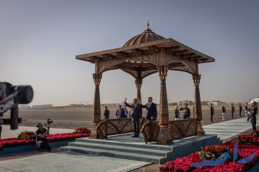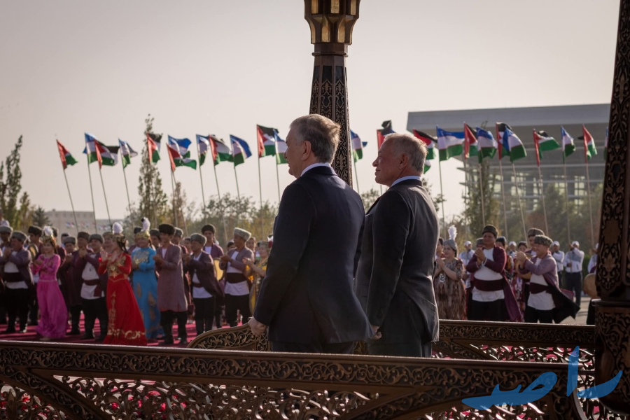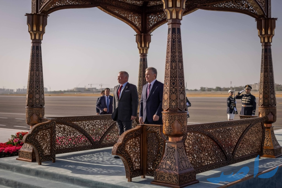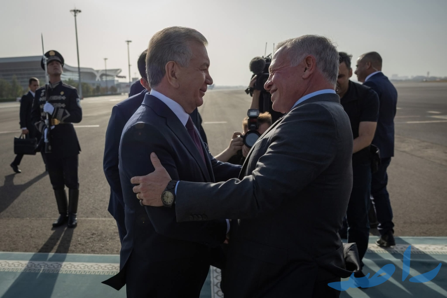 استقبل رئيس جمهورية أوزبكستان شوكت ميرضيائيف جلالة الملك عبدالله الثاني لدى وصول جلالته مطار سمرقند الدولي