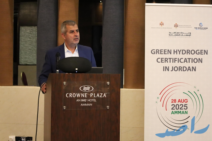 جاء ذلك خلال افتتاح الوزير لورشة عمل بعنوان " نظام اعتماد الهيدروجين الأخضر في الأردن" المنفذة من قبل شركة " DNV " العالمية نيابة عن الوزارة والبنك الدولي.