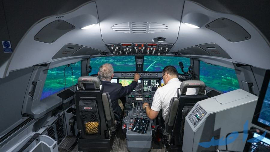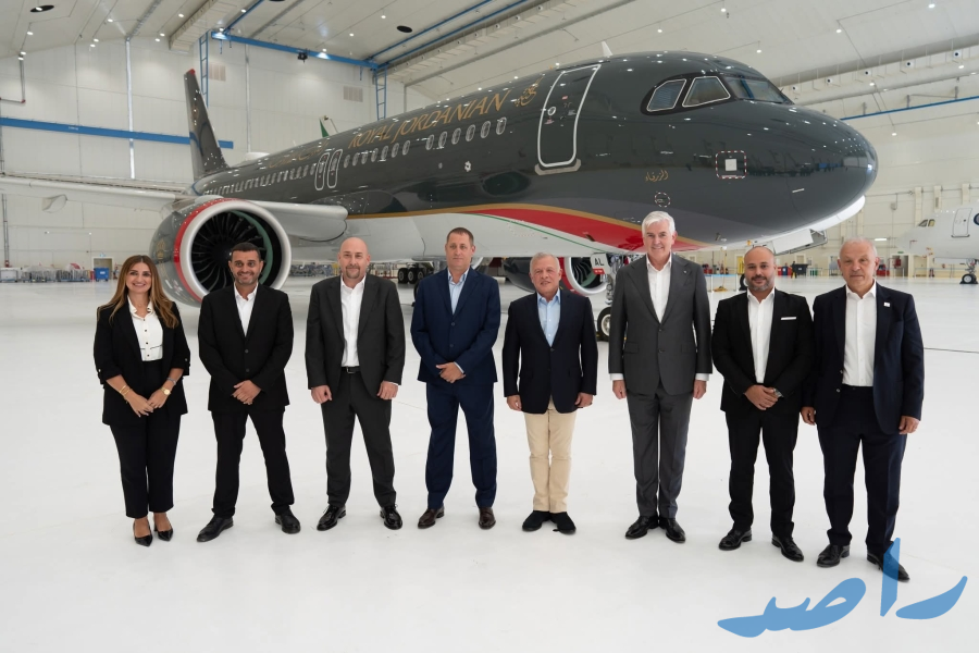 وجال جلالته في مرافق الشركة، واطلع على جهاز المحاكاة والتدريب التشبيهي الجديد "جهاز محاكاة الطيران الكامل لطائرة إمبراير E2" المعتمد من وكالة سلامة الطيران الأوروبية.