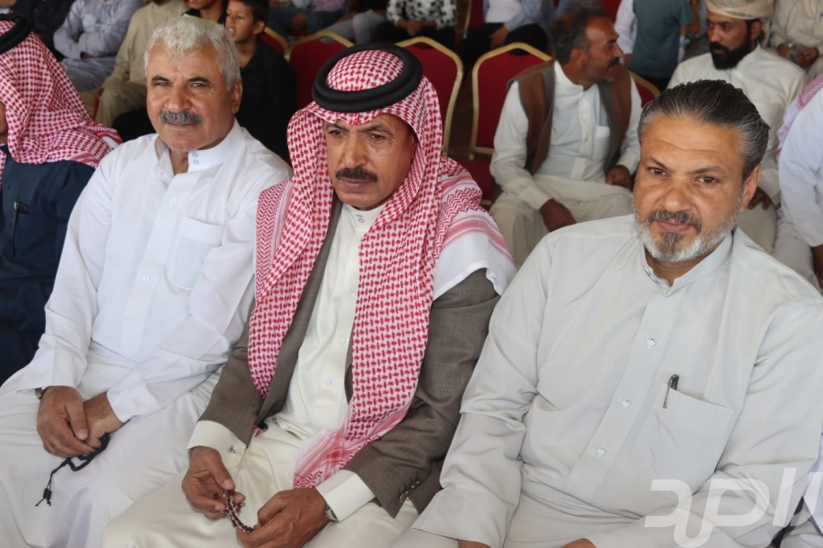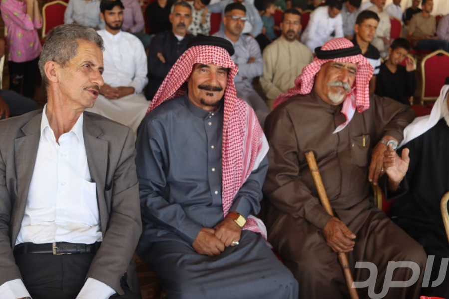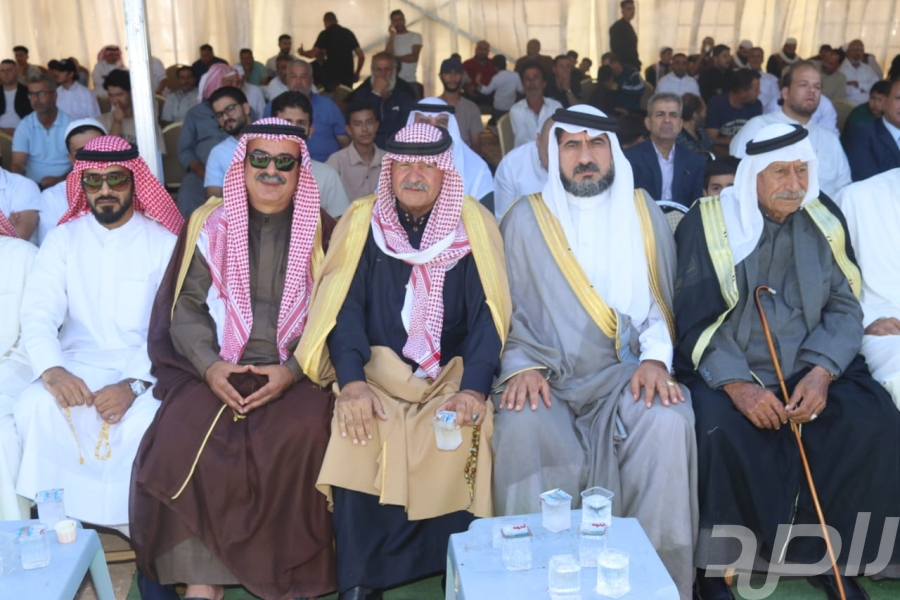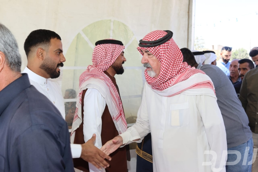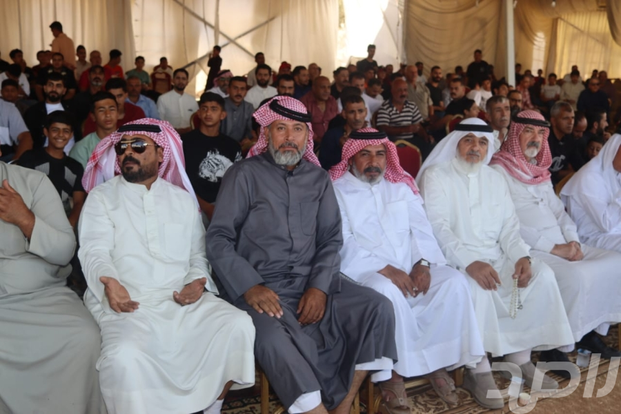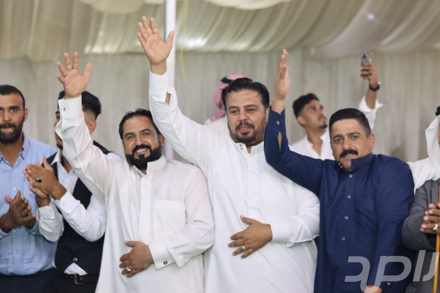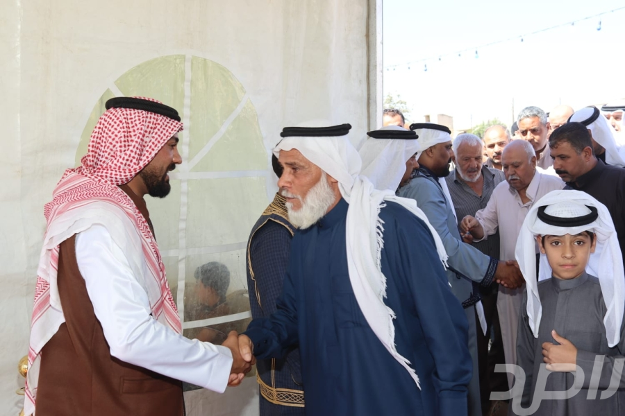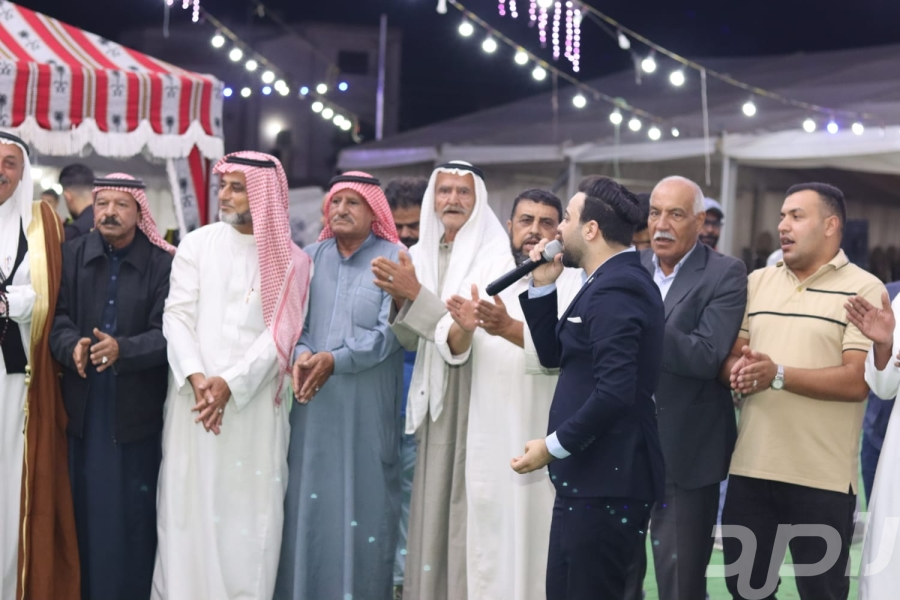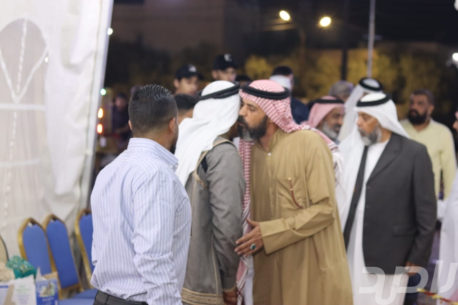 وترأس الشيخ حامد آل صالح (أبو عقيد) المستقبلين مهليلاً ومرحباً بالضيوف الكرام، معبراً عن اعتزاز العشيرة بهذا الحضور الوطني الكبير الذي يُعدّ تكريماً لها ولقيم التآخي. وامتلأ المكان بأجواء البهجة والترحاب، وسط تبادل التهاني والدعوات للعريس بالبركة والسعادة في حياته الزوجية، وتمنيات الحضور للعشيرة دوام الأفراح والمسرات.