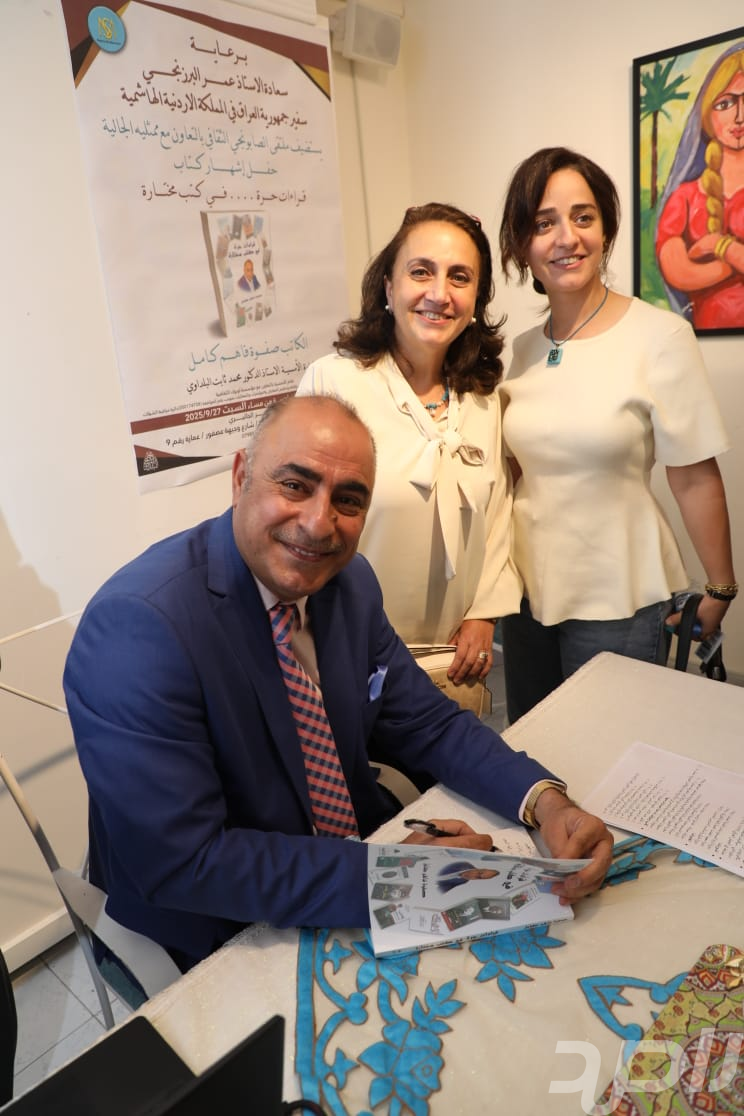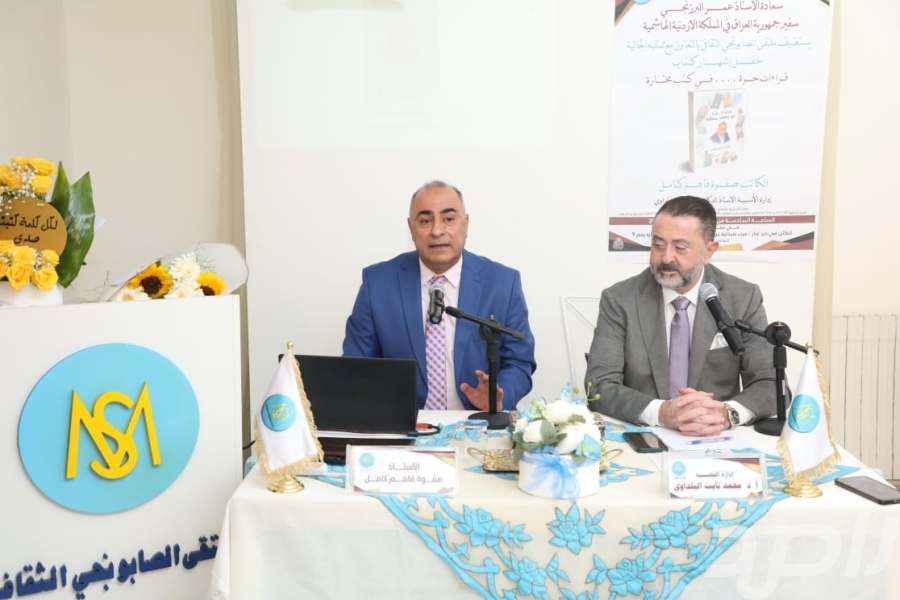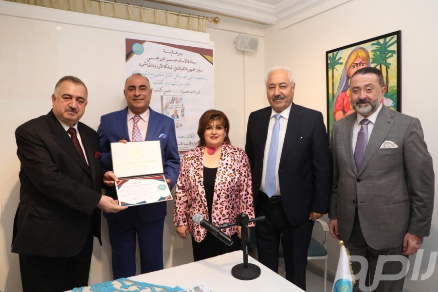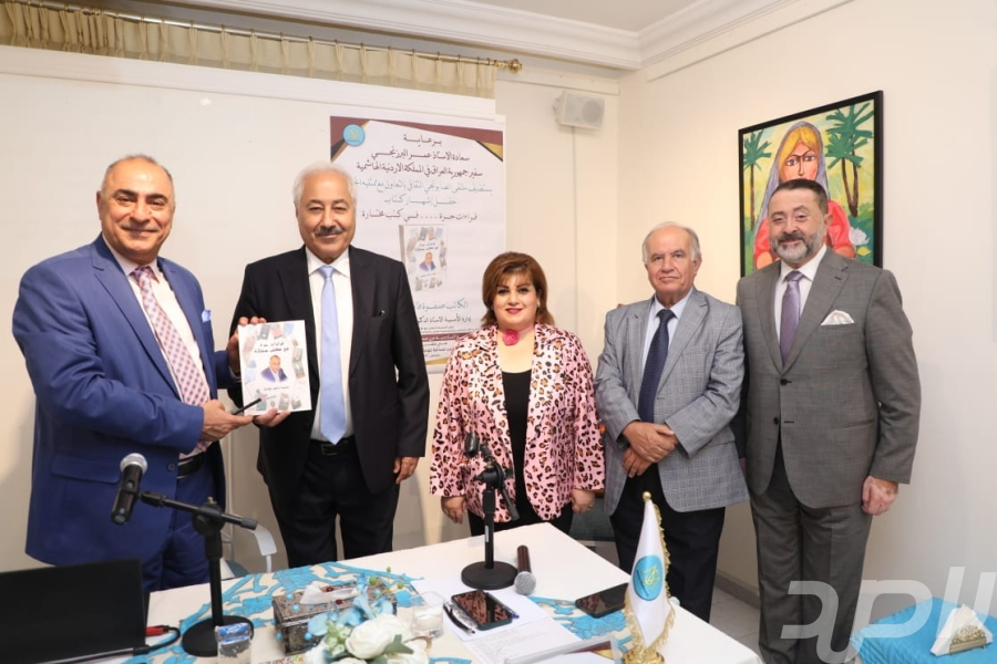 رعى سعادة الأستاذ عمر البرزنجي سفير جمهورية العراق في المملكة الأردنية الهاشمية إطلاق كتاب (قراءات حرة ... في كتب مختارة) للكاتب والباحث صفوة فاهم كامل والذي أقيم مساء السبت 27/9/2025 في قاعة ملتقى الصابونجي الثقافي في العاصمة عمان وبحضور نخبة من أبناء الجالية العراقية والمجتمع الثقافي الأردني.. وقد أدار الجلسة الأستاذ الدكتور محمد ثابت البلداوي الذي رحب براعي الحفل وضيوفه مؤكداً على حرص المثقف العراقي بأن يكون واجهة مشرقة أينما اغترب وأينما أقام مشيراً إلى أن هناك أعداداً كبيرة من مثقفي العراق الذين يقيمون في العاصمة عمان وكان لهذا المكان الذي احتوى أكثر من (97) لقاءاً ثقافياً أدبياً فنياً نقدياً علمياً في التخصصات الإنسانية والعلمية وكان منبراً لتبادل الثقافات وتقاربها وأثنى مدير الجلسة على اهتمام وحرص سعادة السفير الدائم على دعم النشاطات الثقافية وحرصه على التواصل مع أبناء الجالية من خلال ممثلياتها وهذه النشاطات التي تقام، والجدير بالذكر أن الكتاب الذي قدمه الأستاذ صفوة والذي تناول فيه مجموعة من الكتب المختارة من مكتبته والذي كان له الأثر في إخراجها وتنقيحها وفهرستها وما حملت من مواضيع مختلفة وإهداءات من مؤلفيها إلى تلخيصها في هذه المجموعة الذي حرص استمراره على تدوين رأيه من خلال المشاركة في الصحف الإلكترونية والأسبوعية واليومية، وتخلل الكتاب مجموعة من الشخصيات التي أعجب بها الكاتب فاختارها ومن ضمنها كتاب سعادة العين الدكتور محمد داودية الذي أعجب بمؤلفه وما تم من تلخيصه وقد أثنى الكاتب على هذا الاحتضان الطيب الذي شهده من خلال الحضور والرعاية والتقديم وفي كلمة ألقاها سعادة السفير أمام الحضور شكر من كان وراء هذا الحفل البهي من إدارة للقاعة والندوة والكاتب وقد أثنى على الجميع بهذا التواصل من خلال هذا المنبر الثقافي المهم وفخره بأن أبناء الجالية المقيمين في المملكة وحرصهم على هذا الحضور الثقافي المتميز. وقدم سعادته شهادة تقديرية تذكارية قدمت باسم الملتقى إلى الضيف واختتم بمداخلة الضيوف وأسئلتهم للكاتب ومن ثم صورة جماعية جمعت الحاضرين. ومن الجدير بالذكر أن دار الذاكرة للنشر والتوزيع التي كانت وما تزال تدعم كل الباحثين في الشأن العراقي والعربي هي التي تبنَّت نشر الكتاب وبحضور رئيس مجلس إدارتها الدكتور عصام خضير.