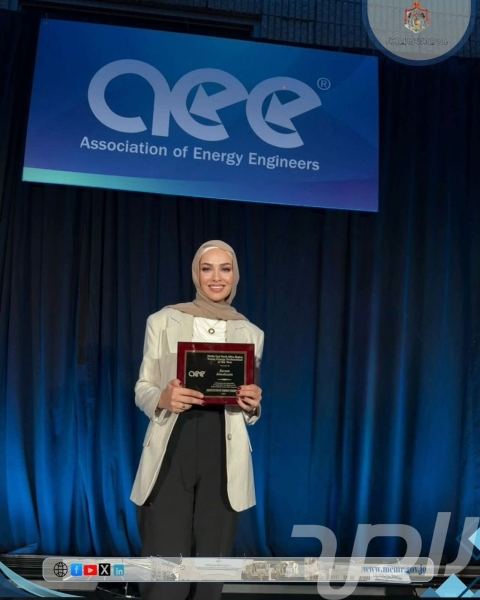 2 تشرين اول 2025- حازت المهندسة كرم العجارمة من وزارة الطاقة والثروة المعدنية على جائزة أفضل مهني شاب في مجال الطاقة (Young Energy Professional Award) لعام 2025 عن منطقة الشرق الأوسط، والتي تمنحها جمعية مهندسي الطاقة الأمريكية (AEE)، وذلك خلال مشاركتها في المؤتمر والمعرض العالمي للطاقة 2025 (AEE World Energy Conference and Expo)، الذي عُقد مؤخراً في مدينة أتلانتا بولاية جورجيا الأمريكية.