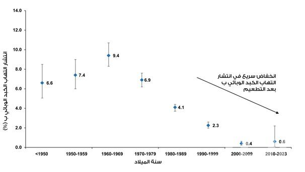 وتكشف نتائج الدراسة عن العبء المترتب على التهاب الكبد 'ب' في الأردن، غير أنها تُظهر أيضاً انخفاضاً حاداً في معدل انتشار المرض، فقد انحسر بنسبة تناهز 7% سنوياً على مدى السنوات الخمس عشرة الماضية. وأصبحت معدلات الإصابة الآن منخفضة جداً بين من ولدوا بعد بدء التطعيم ضد التهاب الكبد 'ب' في عام 1995، لكنها ما تزال مرتفعة بين الأجيال الأكبر سناً التي ولدت قبل حملات التطعيم الواسعة النطاق.