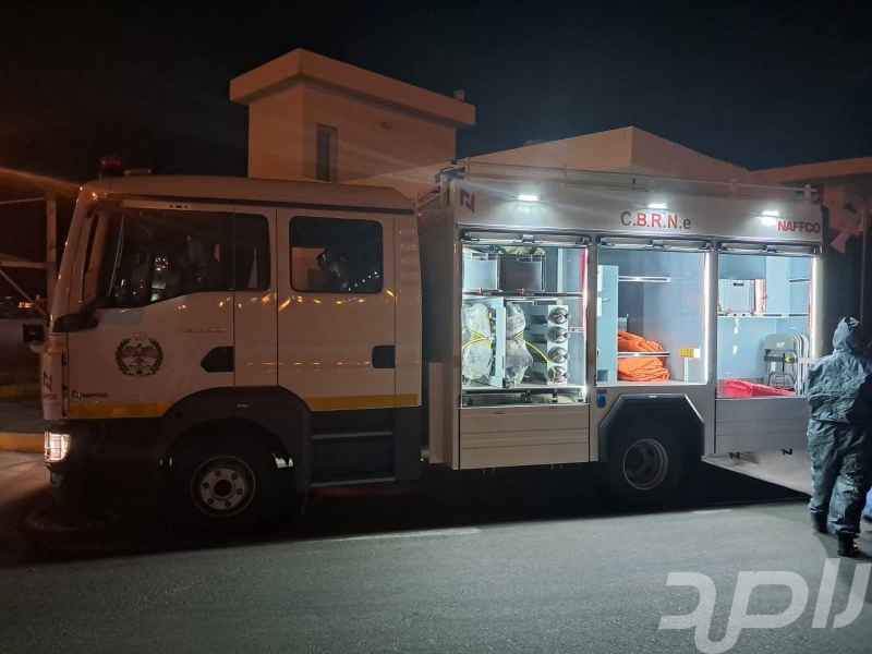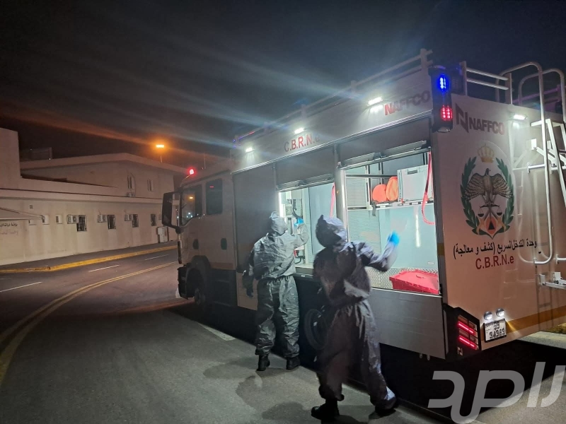 *فريق المواد الخطرة في الدفاع المدني وصل فور تلقي البلاغ وقام بتطويق موقع التسرب واتخذ كافة الإجراءات العملياتية اللازمة وفق البروتوكلات بمثل هذه الحالات ، والتأكد من نسبة الغازات في الجو .