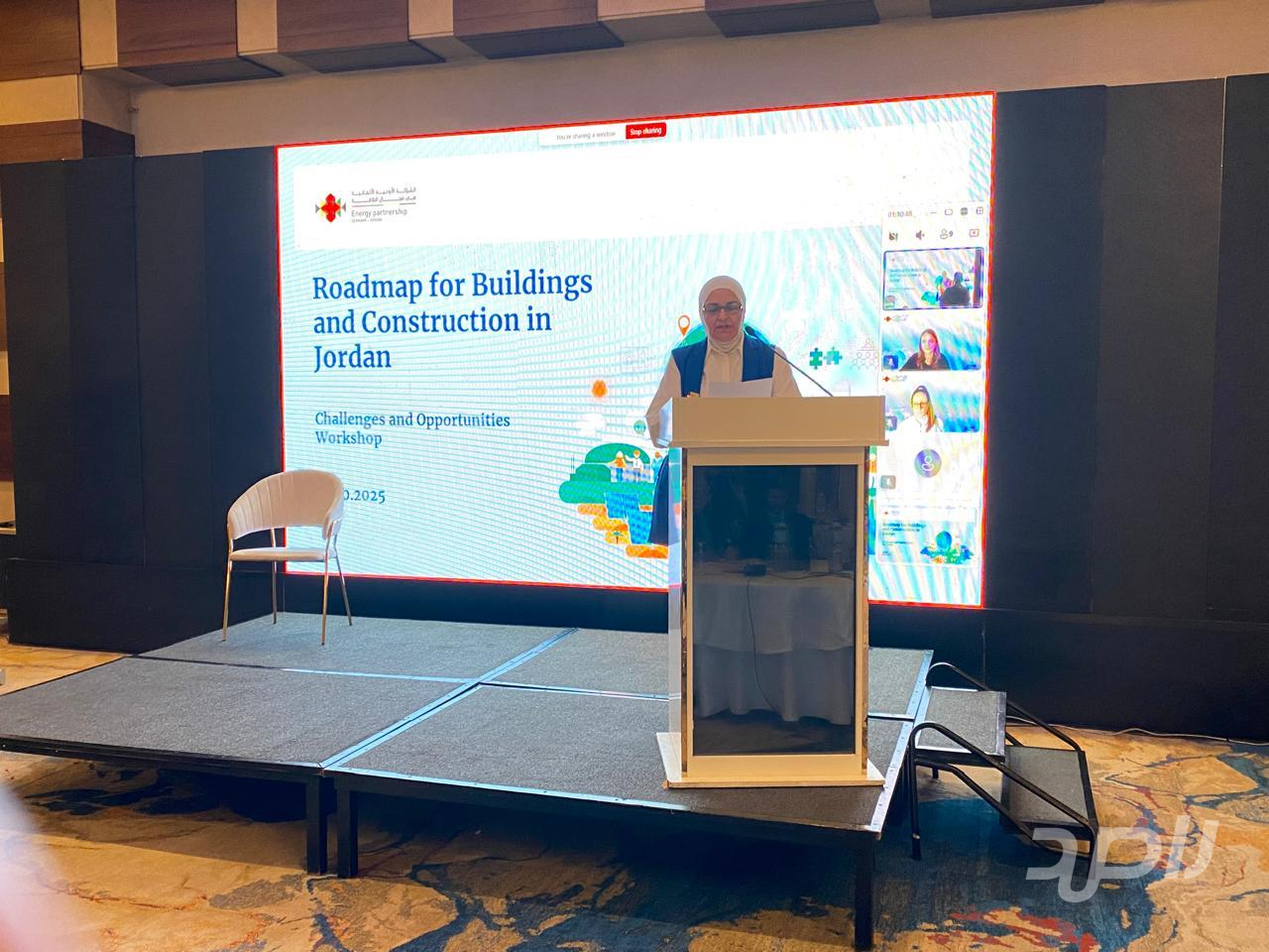 وقدّمت الورشة مدير مديرية كفاءة الطاقة والتغير المناخي في وزارة الطاقة والثروة المعدنية المهندسة لينا مبيضين، بمشاركة ممثلين عن القطاعين العام والخاص والمؤسسات الأكاديمية ومنظمات المجتمع المدني، حيث ناقشت أبرز التحديات والفرص في قطاع الأبنية، وسبل تعزيز كفاءة الطاقة وتبنّي الحلول الابتكارية في تصميم وتنفيذ الأبنية المستدامة.