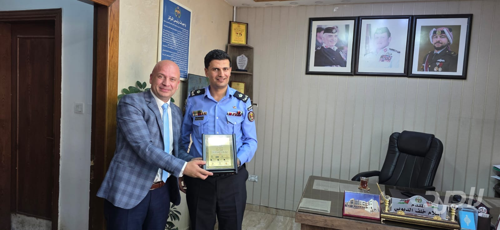 كما أعرب وفد الجامعة عن اعتزازه الكبير بالأجهزة الأمنية في وطننا الغالي، وبالشراكة المتميزة التي تجمع الجامعة مع نشامى جهاز الأمن العام، تقديرًا لدورهم الوطني في خدمة المجتمع والحفاظ على أمنه واستقراره في ظل قيادة سيد البلاد جلالة الملك عبد الله الثاني بن الحسين حفظه الله ورعاه.