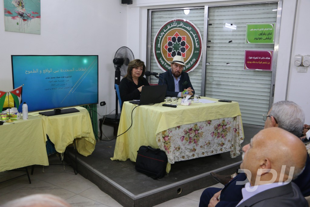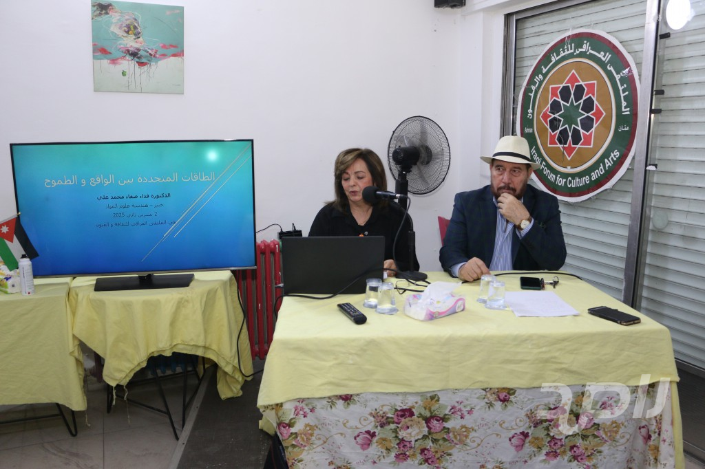 اقام الملتقى العراقي للثقافة والفنون وضمن فعالياته المتنوعة والمتعددة ووسط حضور لافت ومميز أمسية علمية ثقافية استضاف فيها الخبيرة في مجال الطاقة الدكتورة المهندسة فداء صفاء محمد علي التي القت محاضرة بعنوان (الطاقات المتجددة بين الواقع والطموح) مساء اليوم الاحد 2/نوفمبر/تشرين ثاني/2025 م في قاعة بيت الثقافة والفنون بعمان وقد ادار الأمسية رئيس الملتقى الصحفي والباحث الفنان ضياء الراوي بحضور عدد من أعضاء الملتقى وأصدقائه وعدد من الكتاب والادباء والاكاديميين والمهتمين .