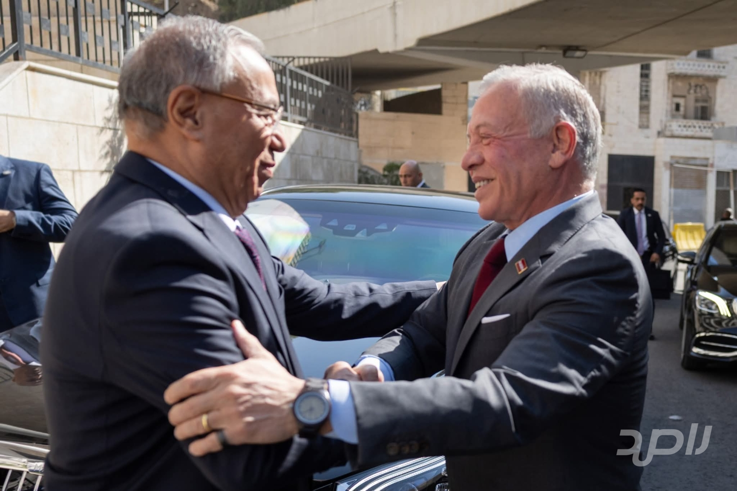 ورافق جلالته، رئيس الديوان الملكي الهاشمي يوسف حسن العيسوي، ومدير مكتب جلالة الملك، المهندس علاء البطاينة.