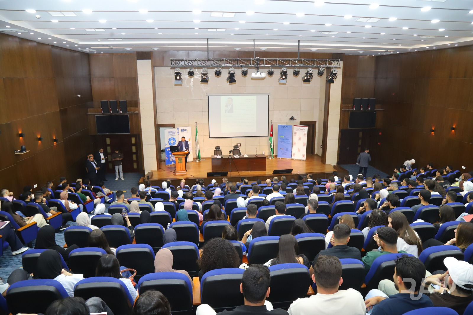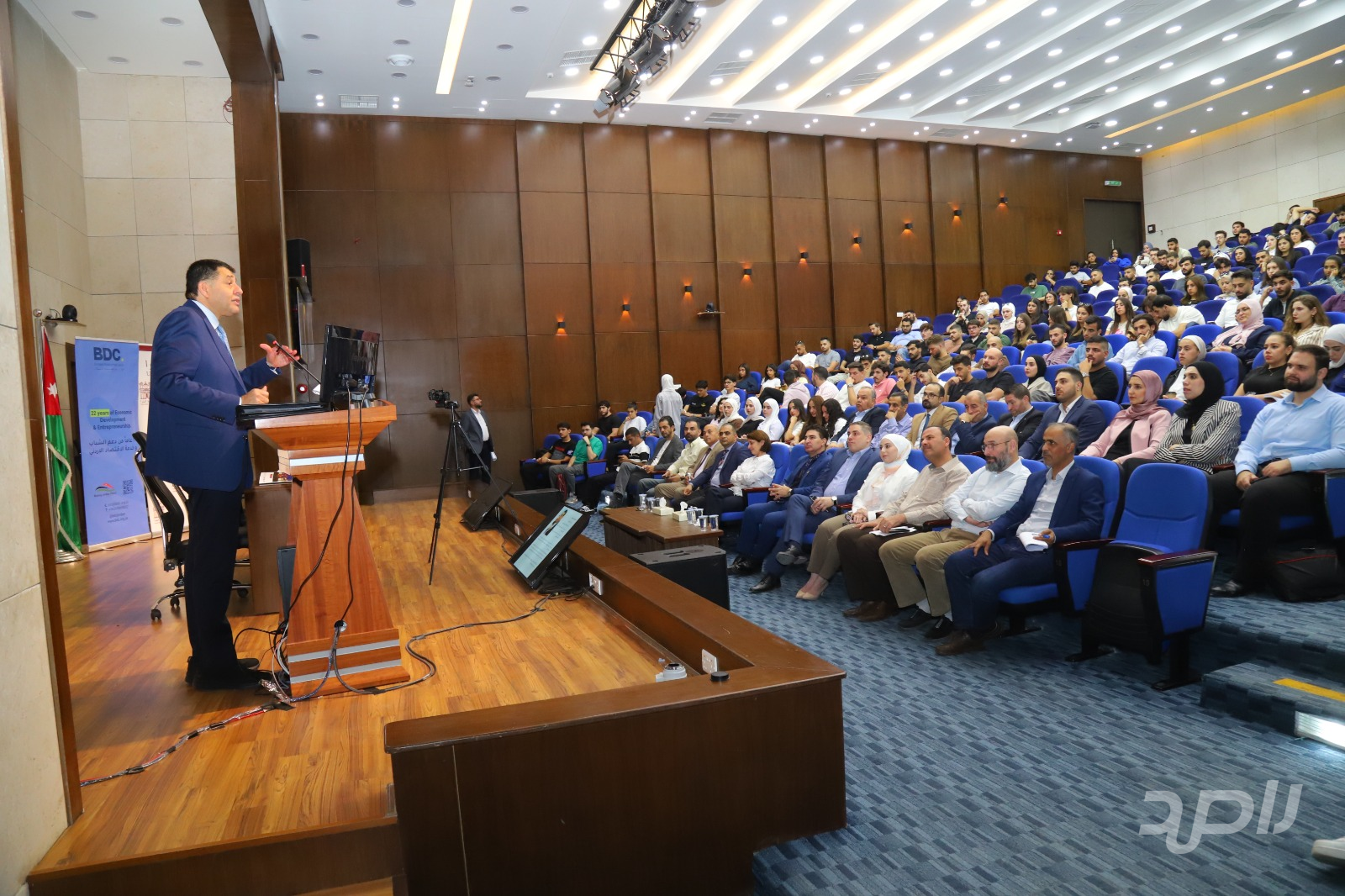 نظمت كلية العلوم الإدارية والمالية في جامعة البترا محاضرة علمية بعنوان "ريادة الأعمال في الأردن"، قدمها وزير العمل الأسبق ومؤسس مركز تطوير الأعمال (BDC) الدكتور نايف استيتية، بهدف تسليط الضوء على متطلبات النجاح في سوق العمل الحديث وربط الطلبة بالخبرات العملية.