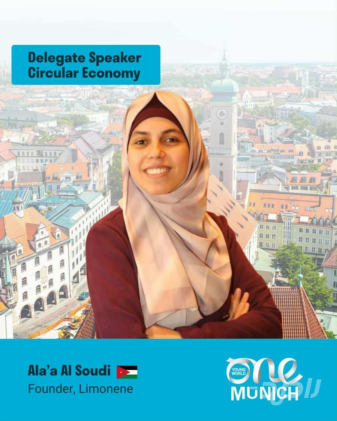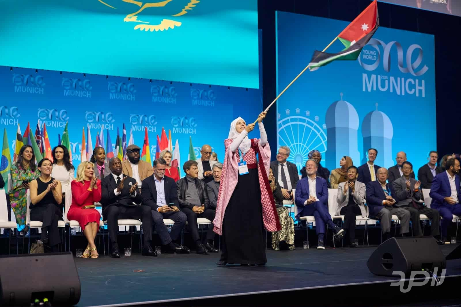 بحضور جلالة الملكة رانيا العبدالله المعظمة، شاركت الريادية الأردنية آلاء ثلجي السعودي خريجة الجامعة الهاشمية من كلية الأمير الحسن بن طلال للموارد الطبيعية والبيئة، في فعاليات قمة "عالم شاب واحد" One Young World 2025، التي أقيمت في مدينة ميونخ الألمانية، وجمعت أكثر من خمسة آلاف شاب وشابة من 190 دولة حول العالم.