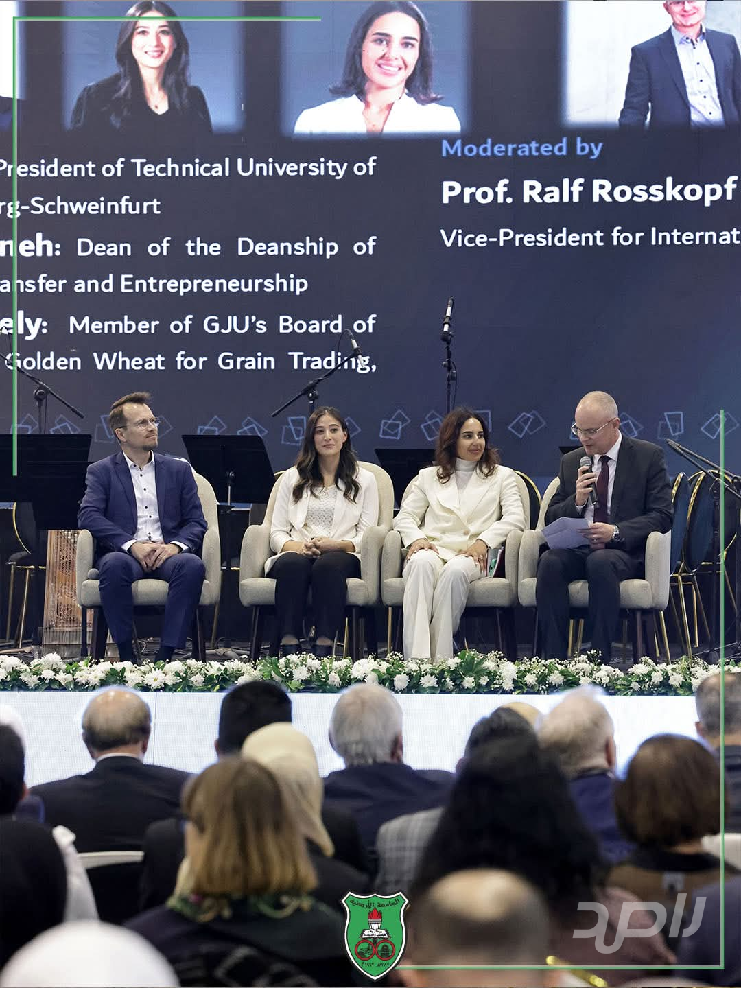 وأعرب الدكتور عبيدات خلال مداخلة له عن تهانيه الحارة للجامعة الألمانية الأردنية ممثلة برئيسها الدكتور علاء الدين الحلحولي، مؤكدًا عمق الشراكة الأكاديمية التي تربط الجامعتين واستمراريتها للارتقاء بالتعليم العالي في الأردن وخدمة البحث العلمي والطلبة والمجتمع. كما أشاد بدور الجامعة الألمانية الأردنية كنموذج رائد في إرساء منظومة التعليم التطبيقي وجسر حضاري بين الأردن وألمانيا يجمع بين الجودة الأكاديمية وروح الابتكار والتبادل الثقافي.