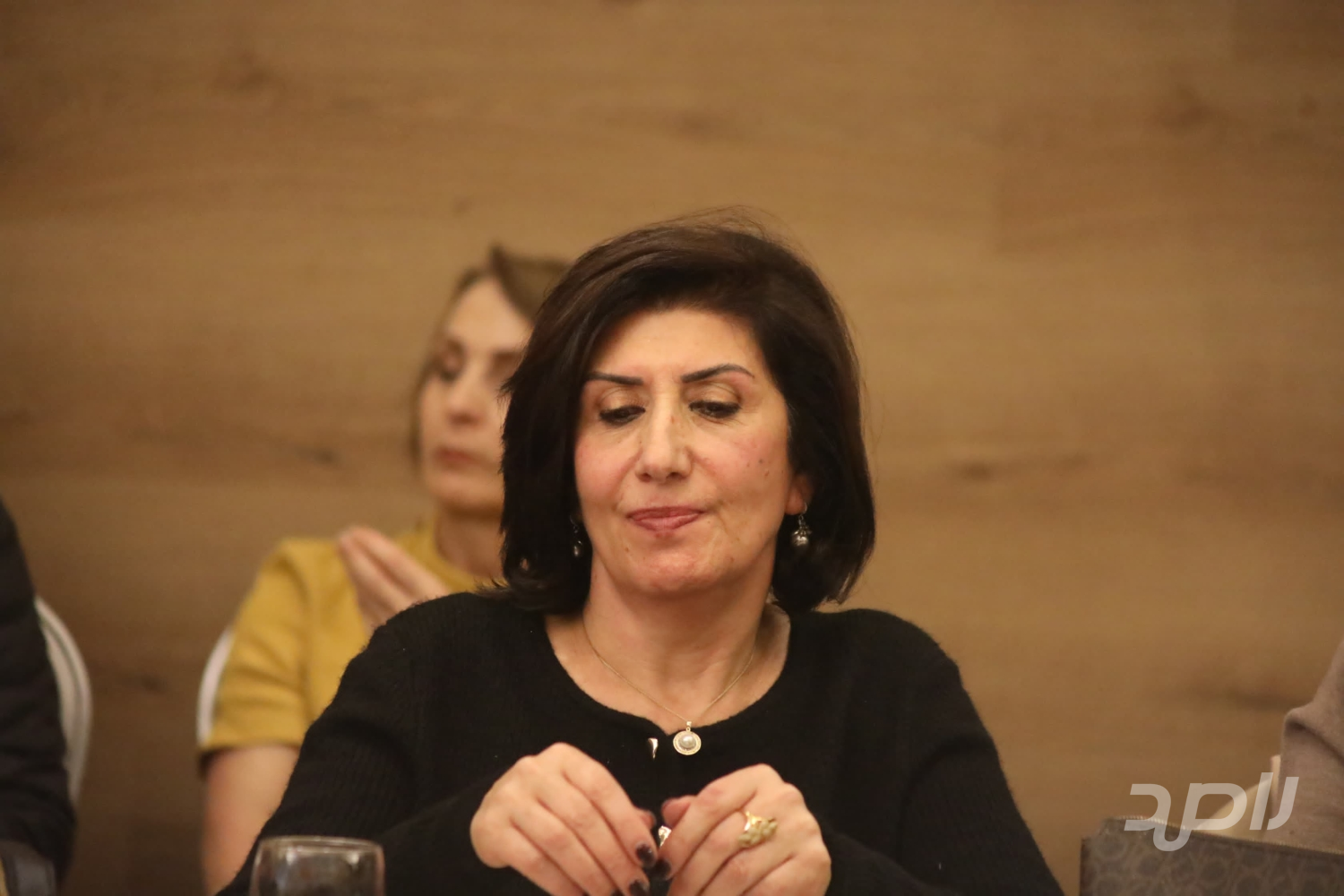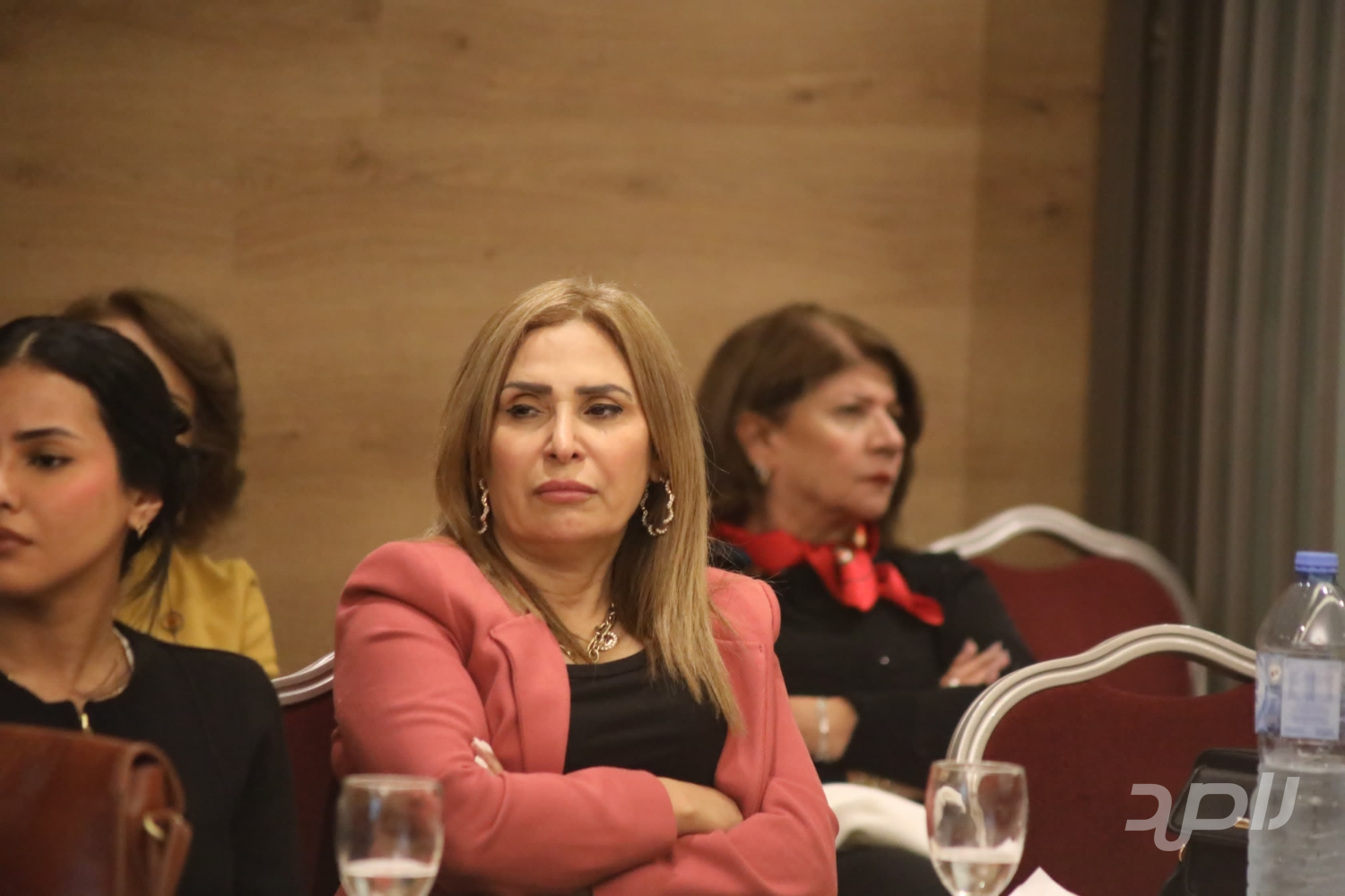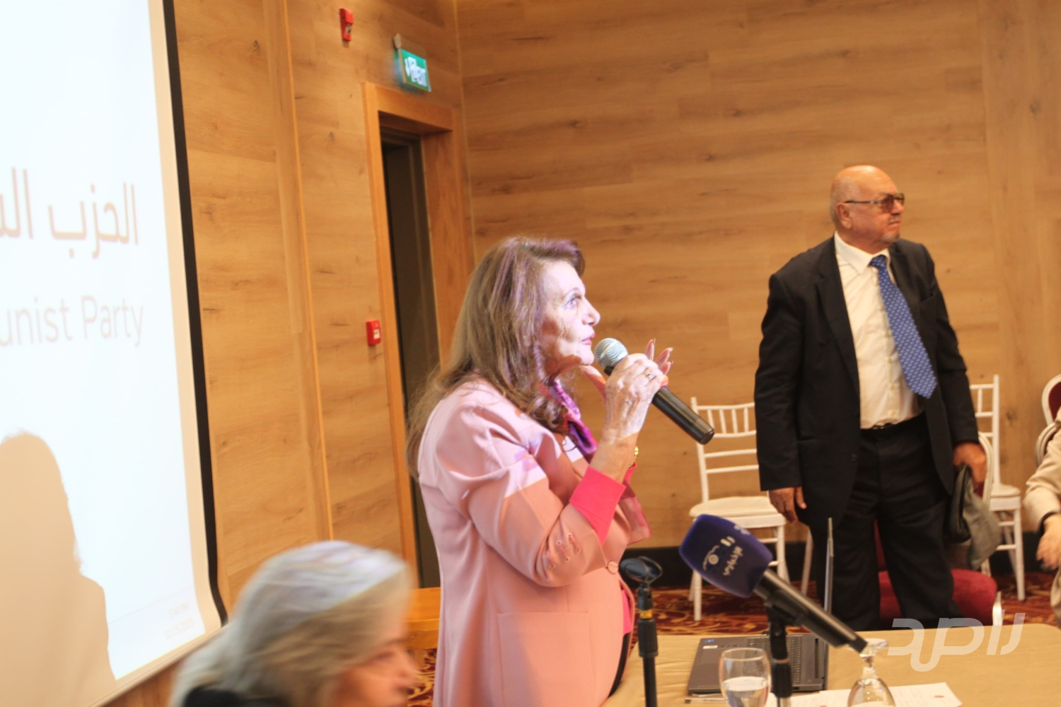 من جانبها، تحدثت الرفيقة عايدة نصر الله، ممثلة المنطقة العربية في اتحاد النساء الديمقراطي العالمي والقادمة من لبنان، معبرةً في بداية كلمتها عن عمق امتنانها وشكرها للحزب الشيوعي الأردني على مبادرته الطيبة في استضافة واحتضان هذه الفعالية الإقليمية المهمة. وأكدت في كلمتها على ضرورة الاستمرار بثبات على درب النضال النسوي الديمقراطي، مشددةً على أن هذا النضال يمثل ركيزة أساسية من ركائز تحقيق حرية الشعوب وتحقيق تحرر المرأة الكامل في منطقتنا العربية وفي جميع أنحاء العالم. واختتمت كلمتها بتوجيه تحية إجلال وإكبار خاصة إلى النساء المناضلات في كل بقعة من بقاع العالم، معطيةً أولوية مميزة لتوجيه التحية لنساء غزة الصامدات في وجه الظروف الصعبة وغير الإنسانية التي يتعرضن لها.
