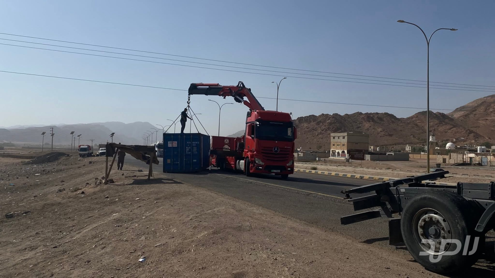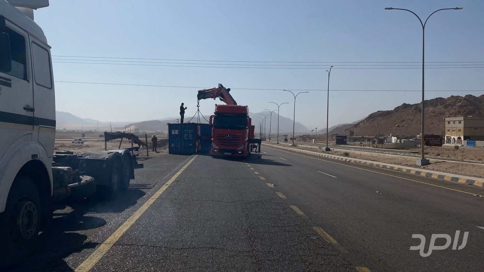 سقوط حاوية عن ظهر شاحنة براشدية العقبة