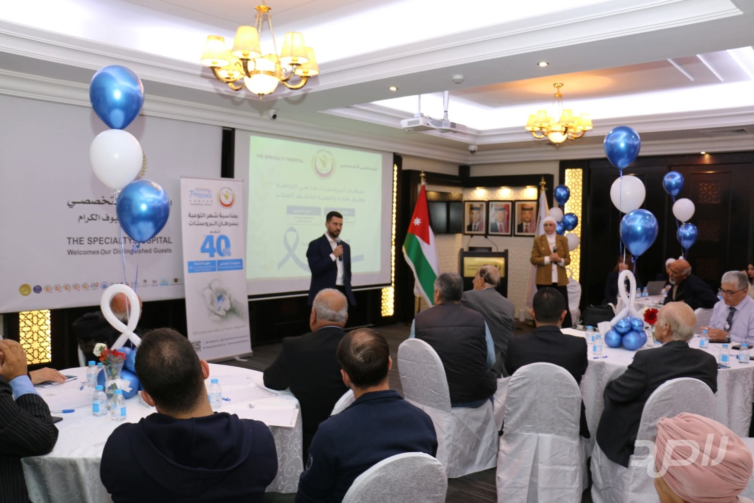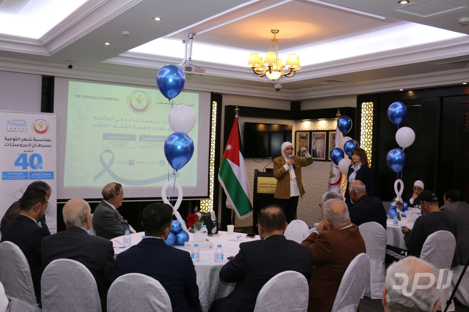 قدّم الدكتور طارق الحموري، استشاري جراحة الكلى والمسالك البولية وجراحة الروبوت، محاضرة تناول فيها أهمية الكشف المبكر لسرطان البروستات ودوره في تحسين فرص الشفاء وتقليل المضاعفات، وأكد على أهمية الفحص الدوري للرجال، خصوصاً لمن لديهم تاريخ عائلي بالسرطان، واستعرض دور غدة البروستات وأهميتها والأمراض المرتبطة بها والعمليات الجراحية التي تُجرى لها. كما أعلن أن المستشفى التخصصي يستعد خلال الفترة المقبلة لإدخال تقنية الروبوت الجراحي لعمليات استئصال البروستات ليصبح أول مستشفى في الأردن يعتمد هذه التقنية المتقدمة، بما يعزز مستوى الخدمات الطبية وفق أحدث المعايير العالمية.