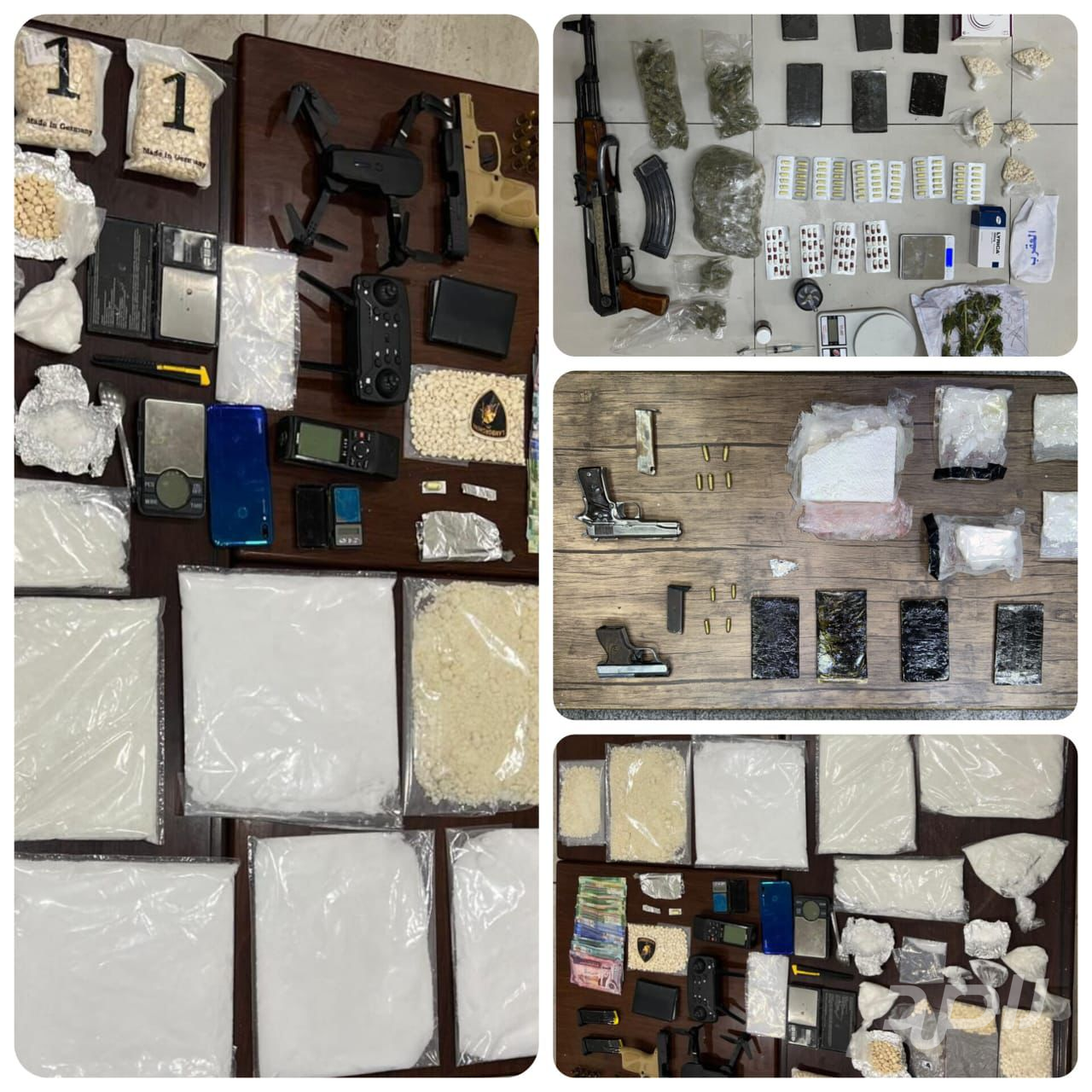 ** ضُبط خلال تلك القضايا ما مجموعة 7 كغم من مادة الكريستال القاتلة و 1 كغم من مادة الكوكايين المخدرة و 253 ألف حبة مخدرة و 92 كف حشيش و1.5 كغم ماريجوانا وثلاثة أسلحة نارية