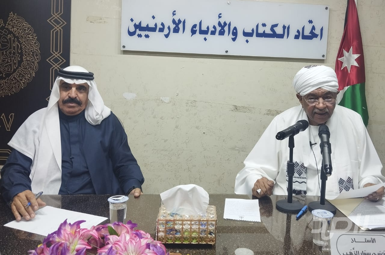 وسط حضور لافت من الأدباء والكتاب والاعلاميين والسياسيين تناول سفير جمهوية السودان لدى المملكة الأردنية الهاشمية سعادة الأستاذ حسن صالح سوار الذهب في ندوة نظمها إتحاد الكتاب والأدباء الأردنيين وإدارها رئيس الاتحاد عليان العدوان مرحبا بالحضور الجماهيري الكبير. وتطرق إلى مآسي الحروب على الثقافة الشعبية وعلى مجموعة القيمة الإنسانية والاعتداء على الآثار والترات وعلى هوية الأمة وأمثلة ذلك ماحصل في العراق وسوريا وقطاع غزة وطمس المعالم الحضارية التاريخية وضرب الحائط بمجموعة القيم والعادات والتقاليد
