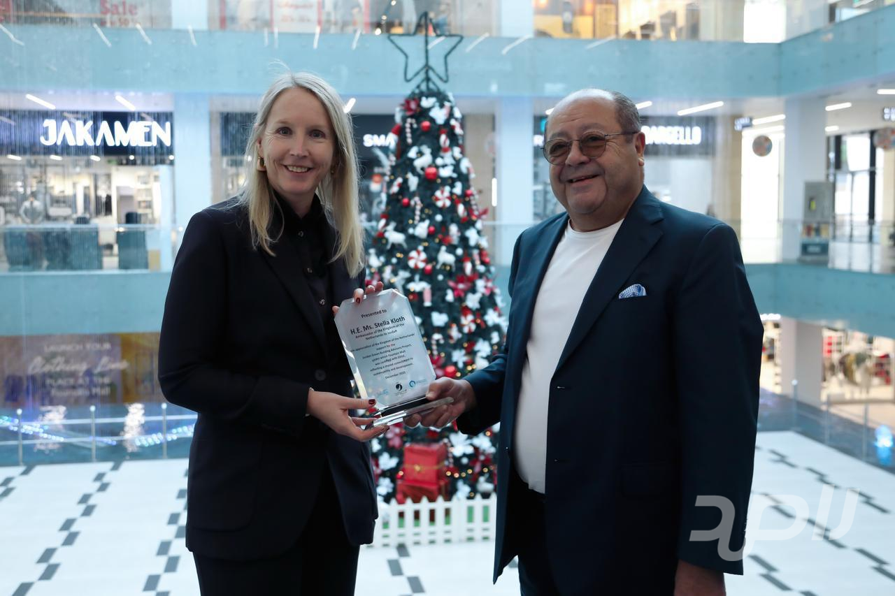 واطلعت السفيرة الهولندية الزيارة على نتائج مشروع "الأبنية الخضراء في الأردن" المدعوم من الحكومة الهولندية، والذي أثمر عن شراكة ناجحة افضت إلى حصول النافورة مول على شهادة EDGE العالمية التي تمنح للمباني المستدامة ذات الكفاءة في استخدام الموارد.