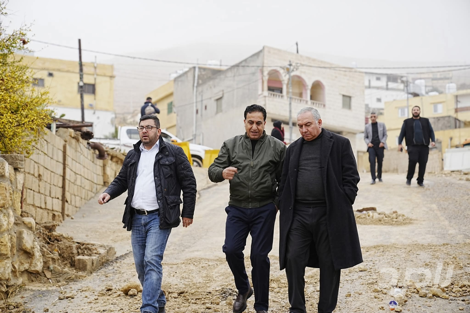 واستهل البريزات جولته الميدانية في منطقة الطيبة ثم الراجف ودلاغة، مؤكداً حرص السلطة على تقديم كافة الخدمات اللازمة للمواطنين في مختلف مناطق اللواء، ومتابعة المشاريع التي ينفذها المقاولون في جميع مناطق الإقليم.