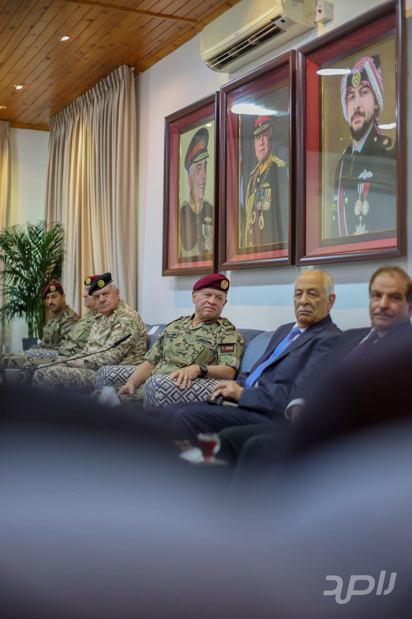 وشارك جلالة الملك رفاق السلاح مأدبة الغداء، بحضور رئيس الديوان الملكي الهاشمي يوسف حسن العيسوي، ورئيس هيئة الأركان المشتركة اللواء الركن يوسف أحمد الحنيطي، وعدد من كبار الضباط.
