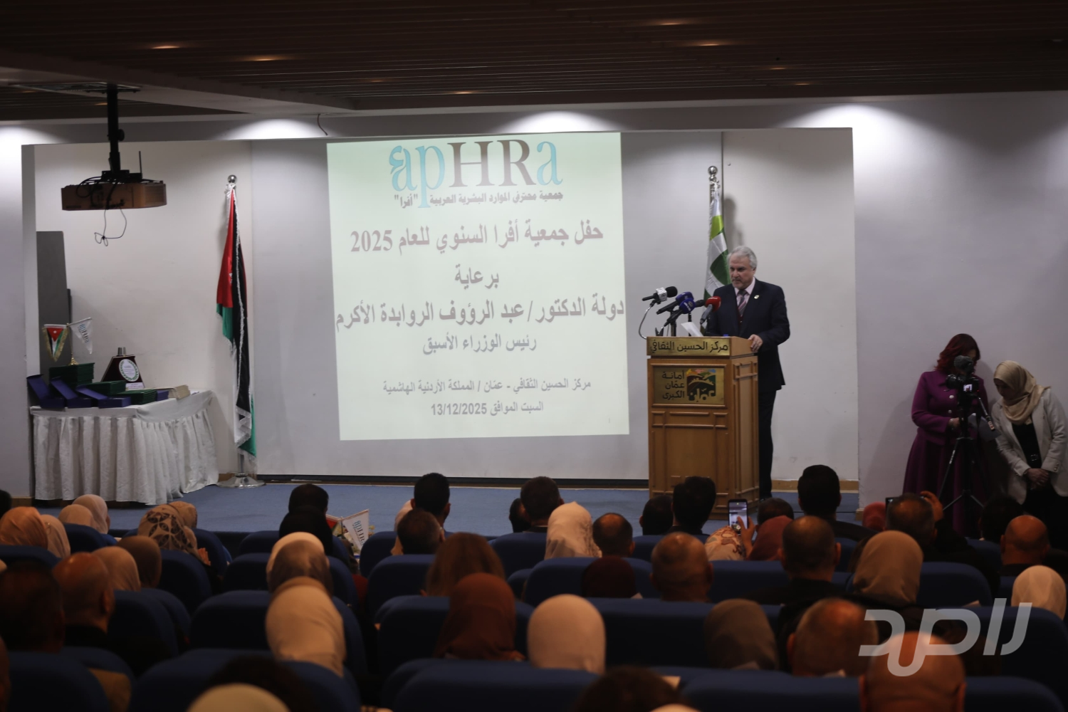 احتفلت جمعية محترفي الموارد البشرية العربية (أفرا)، بمناسبة احتفالها السنوي للعام 2025، تحت رعاية دولة الدكتور عبد الرؤوف الروابدة.