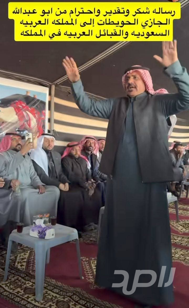 وقد شكر الحاضرين المملكة العربية السعودية ملكاً و ولي العهد وحكومةً والشعب السعودي على حفاوة الاستقبال للرحالة وكرم الضيافة ممثلة بالعشائر السعودية الاصيلة.