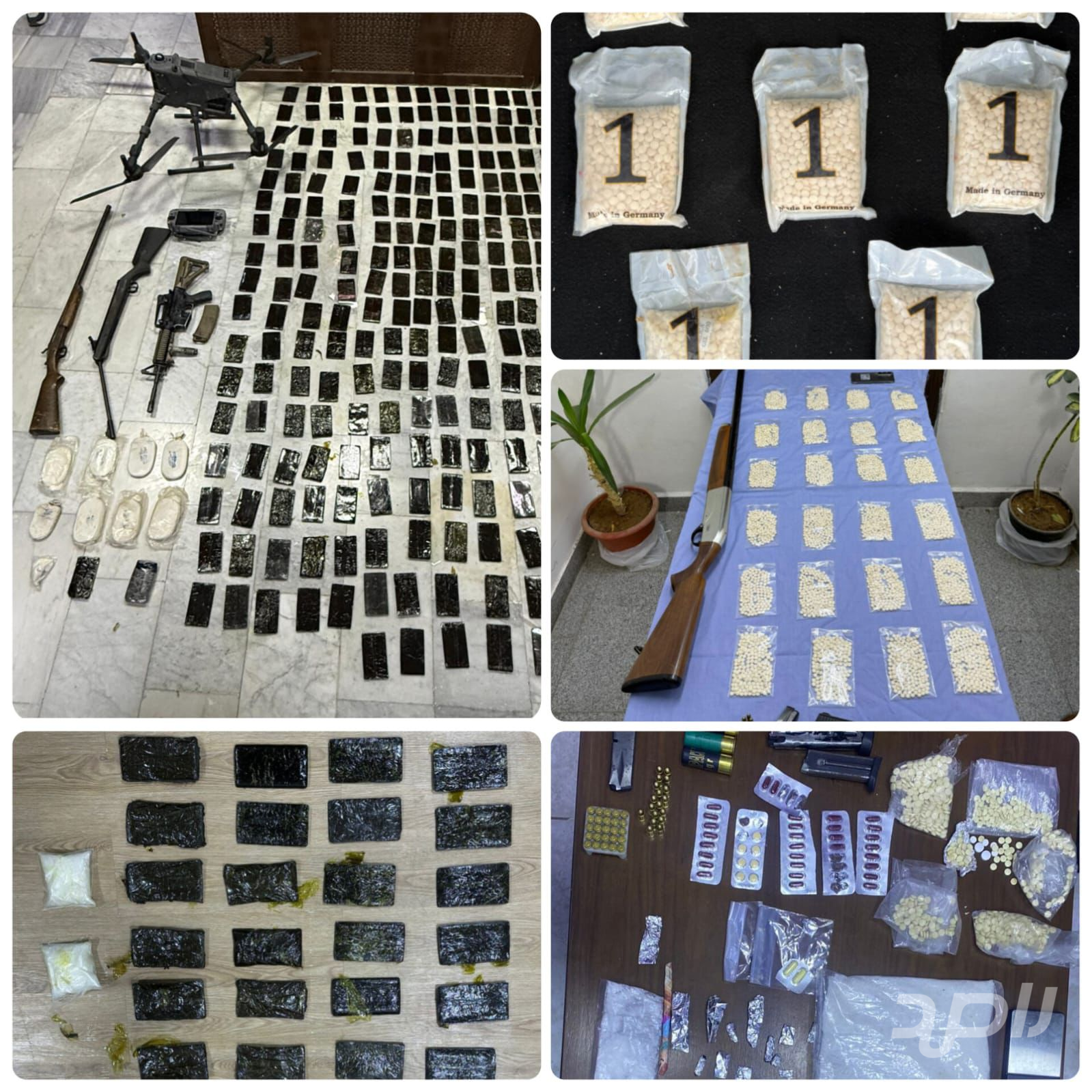 إدارة مكافحة المخدرات تلقي القبض على عصابة إقليمية لتهريب المخدرات مكونة من خمسة أشخاص ، وتضبط بحوزتهم 270 كف حشيش وسلاحاً نارياً أوتوماتيكياً.
