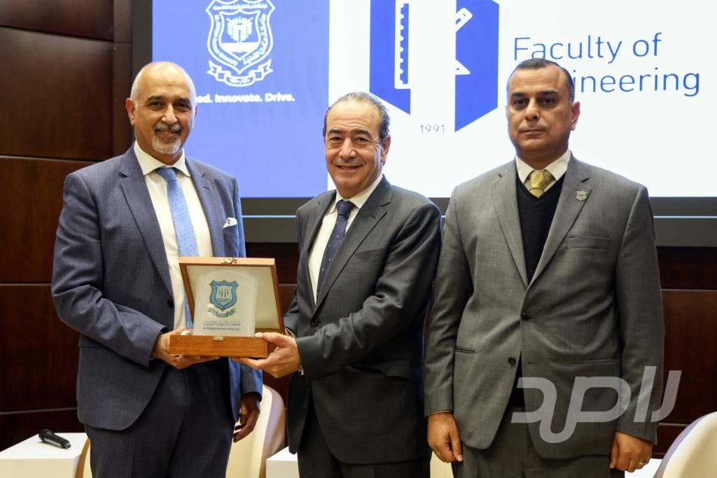 وفي ختام الفعالية، قام الأستاذ الدكتور أحمد حمدان نائب رئيس الجامعة، والأستاذ الدكتور بشار الطراونة عميد كلية الهندسة، بتكريم سعادة نقيب المهندسين الأردنيين، والمشاركين في الجلسات الحوارية، تقديرًا لمساهماتهم ودورهم في إنجاح فعاليات يوم الخريج الثاني.