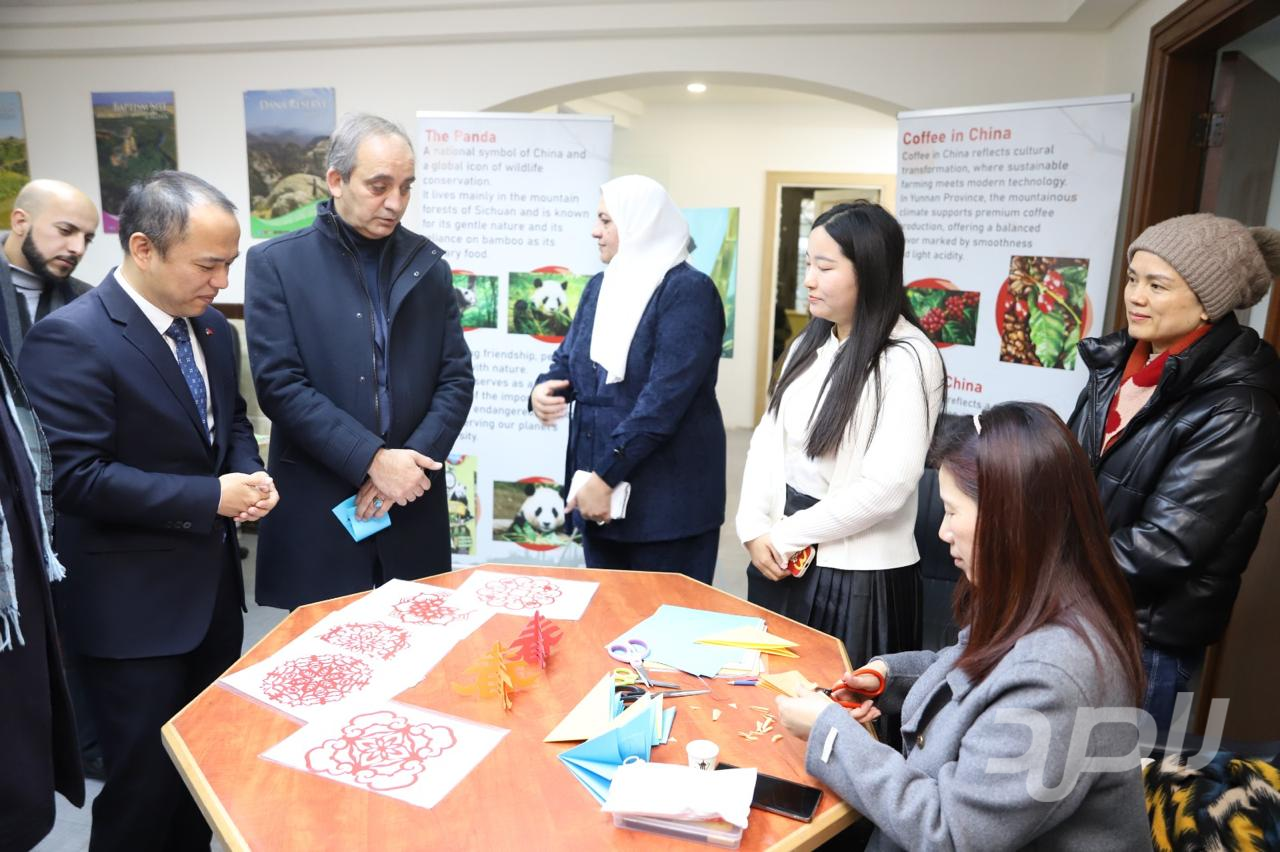 وشملت الزيارة عرضًا قدّمه المركز الثقافي الصيني حول إنجازات طريق الحرير، من خلال لوحات ومحطات تفاعلية قدّمت رؤية شاملة للأبعاد الحضارية والاقتصادية والثقافية للتجربة الصينية.