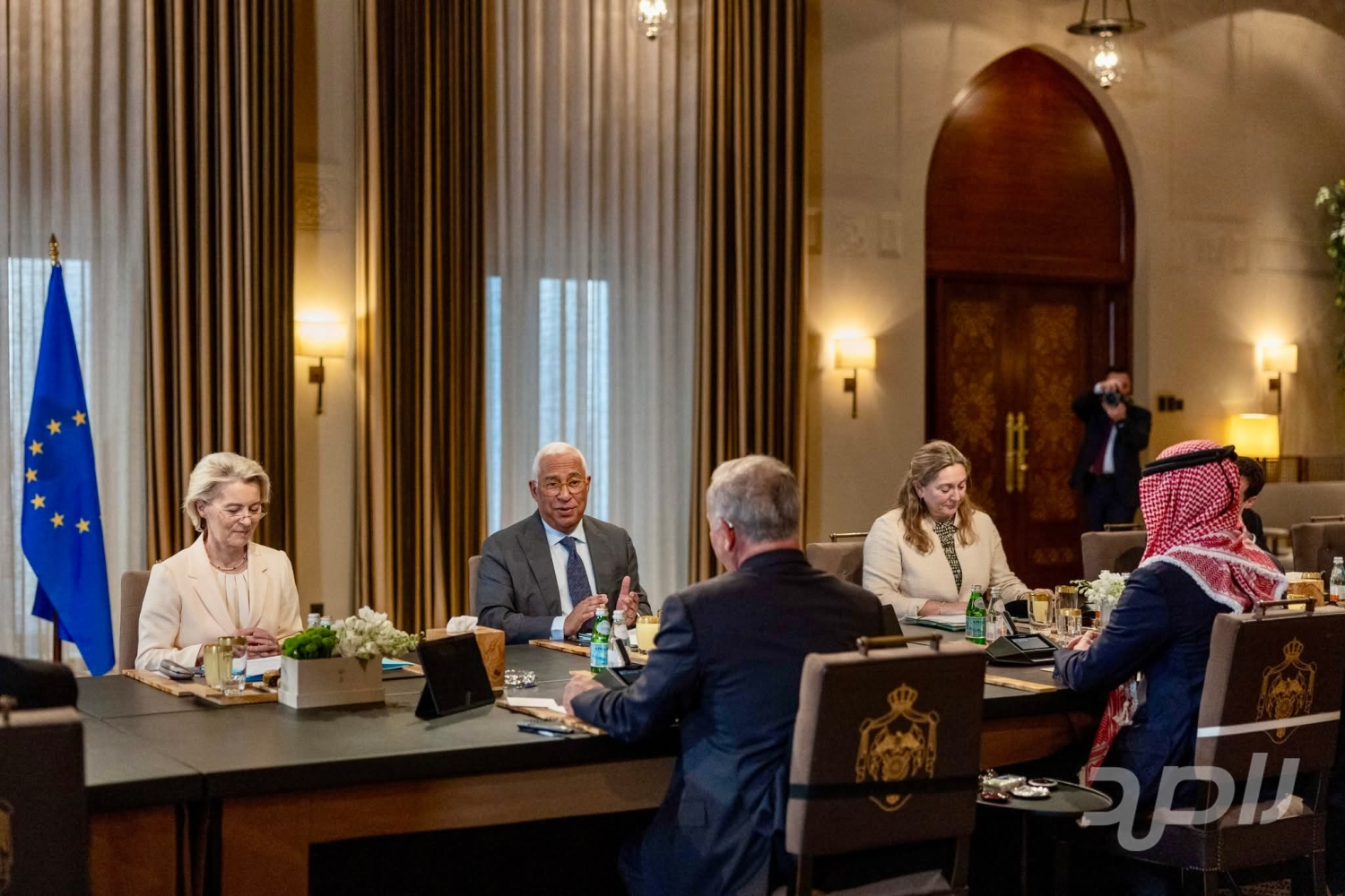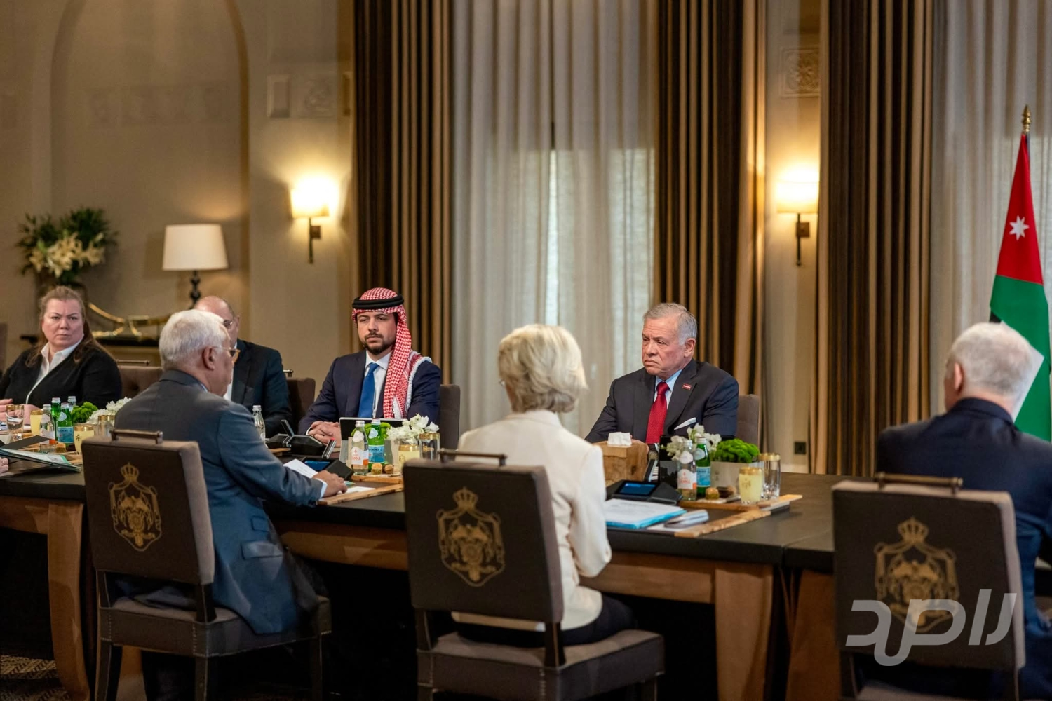 ورحب جلالة الملك في بداية مباحثات موسعة في قصر الحسينية بالمسؤولين الأوروبيين، مشيرا إلى أن هذه القمة تمثل فصلا مهما في الشراكة التاريخية بين الأردن والاتحاد الأوروبي، وتعزز العلاقات المبنية على الالتزام بالعمل من أجل الاستقرار الإقليمي والازدهار.