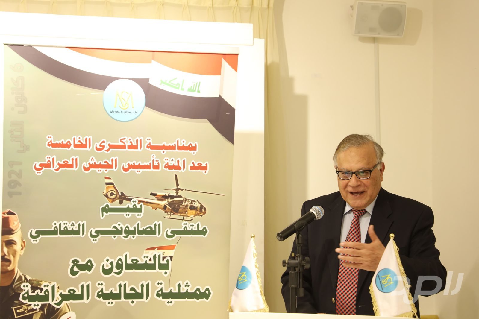 وأدار الحفل الأستاذ الدكتور محمد البلداوي، الذي ألقى كلمة بالنيابة عن أبناء الجالية العراقية، موجهاً تحية إجلال واعتزاز إلى الجيش العراقي الباسل، ومستعرضاً جانباً من تاريخه المشرف الممتد منذ عشرينيات القرن الماضي.