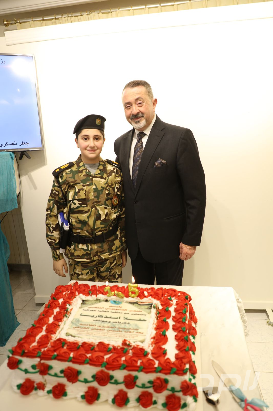 ولم يخلُ الحفل من لمسة وفاء رمزية، حيث تم تقطيع كعكة المناسبة في مشهد عبر عن روح المحبة والوحدة، ومشاركة الحضور جميعاً في الاحتفاء بعراق الوفاء والانتماء.