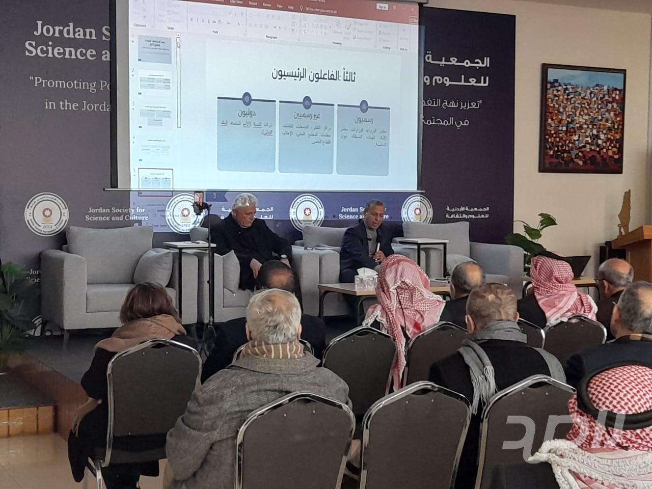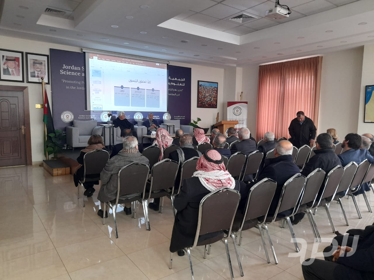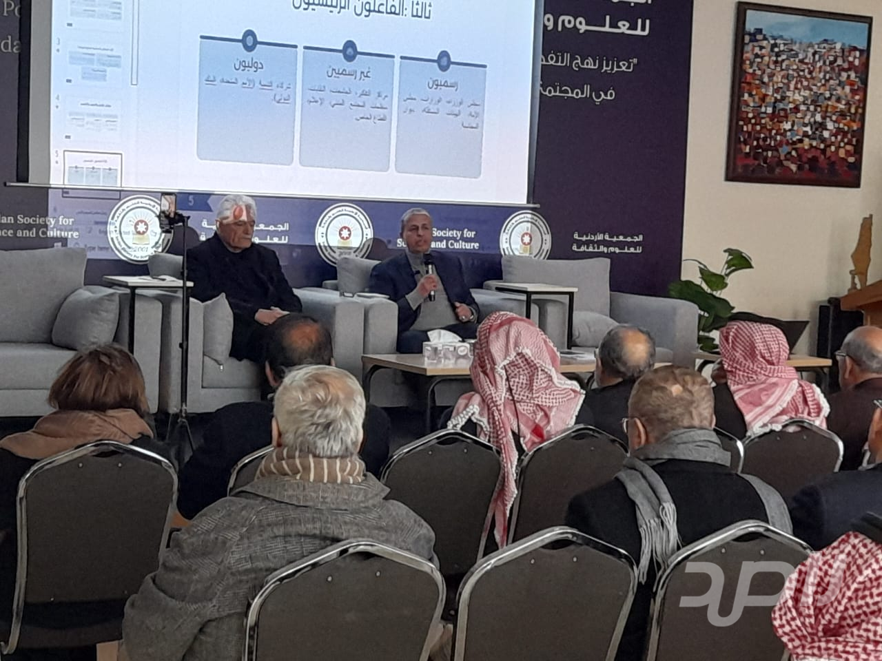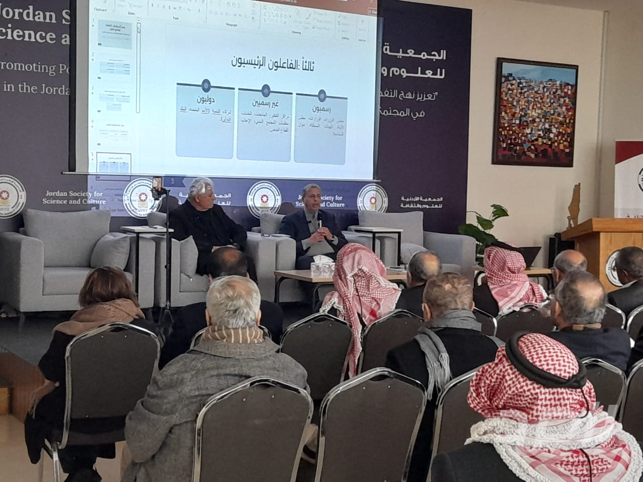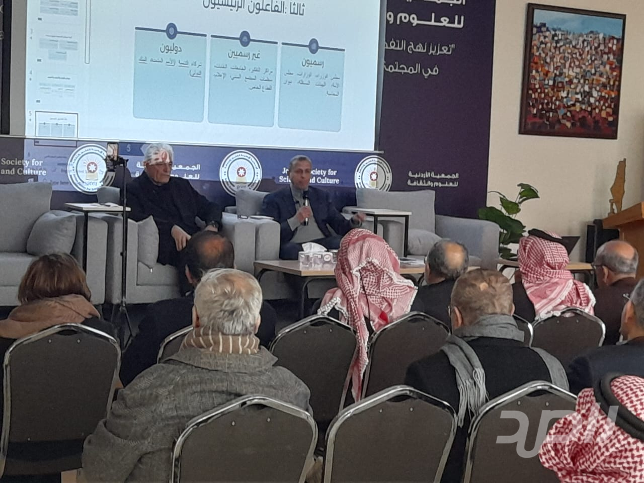 بحضور رئيسها الوزير الاسبق سمير الحباشنة وأعضائها ومجموعة من المهتمين عقدت الجمعية الأردنية للعلوم والثقافة ظهر السبت الفائت ندوة بعنوان " رسم السياسات العامة وصنع القرار "حاضر فيها اللواء المتقاعد المهندس بسام الفالح وقدمه العميد المتقاعد ايمن الروسان عضو الجمعية .