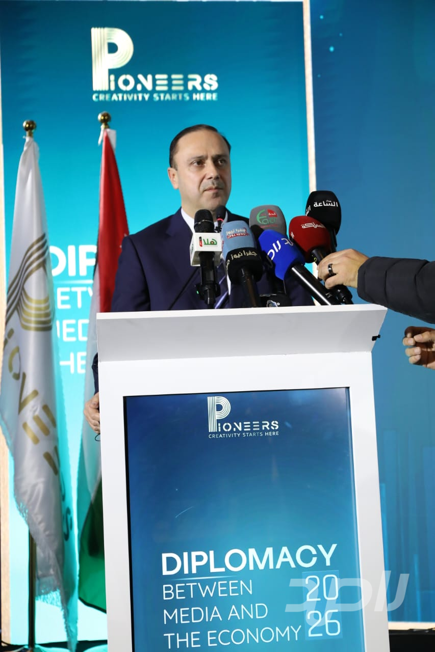 الاثنين - 19 كانون الثاني 2026 - ايمن المجالي - رعى وزير الاتصال الحكومي الدكتور محمد المومني فعاليات المؤتمر الدولي الذي حمل عنوان "الدبلوماسي بين الإعلام والاقتصاد والدبلوماسية... نحو حضور عالمي يعزز فرص الاستثمار". يهدف المؤتمر إلى جمع الدبلوماسي والإعلامي والمستثمر على منصة واحدة لصناعة المستقبل وتعزيز فرص الاستثمار على المستوى العالمي.