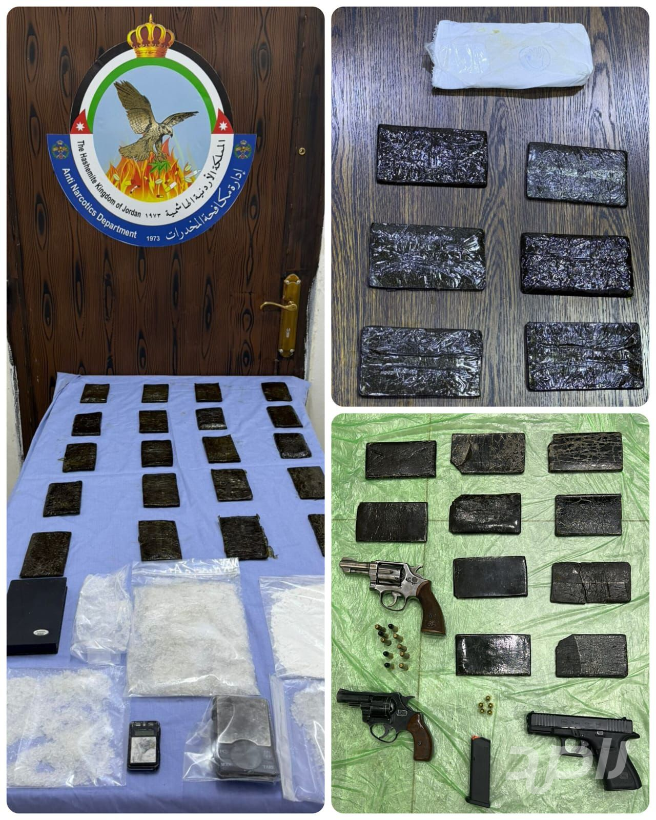 إدارة مكافحة المخدرات تلقي القبض على ثلاثة أشخاص على علاقات مع عصابات إقليمية لتهريب وتجارة المخدرات في قضيتين في الرويشد ومأدبا، وتضبط في الأولى 120.000 ألف حبة مخدرة وفي الثانية 50 كف حشيش .
