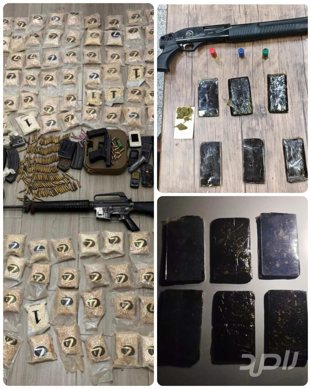 وأوضح الناطق الإعلامي تفاصيل القضيتين المرتبطتين بعصابات إقليمية، حيث كانت الأولى ضمن اختصاص لواء الرويشد حيث قام فريق تحقيقي خاص بمتابعة ومراقبة أحد الأشخاص المشتبه بهم بالتعامل مع عصابات إقليمية للتهريب وتجارة المخدرات وبعد التأكد من كافّة المعلومات وحيازة ذلك الشخص لكميات كبيرة من المخدرات ومكان إخفائه لها جرت مداهمته وإلقاء القبض عليه وضُبط بحوزته 120 ألف حبة مخدرة وسلاحان ناريان وأجهزة خاصّة لتحديد المواقع والتواصل مع العصابات الإقليمية .