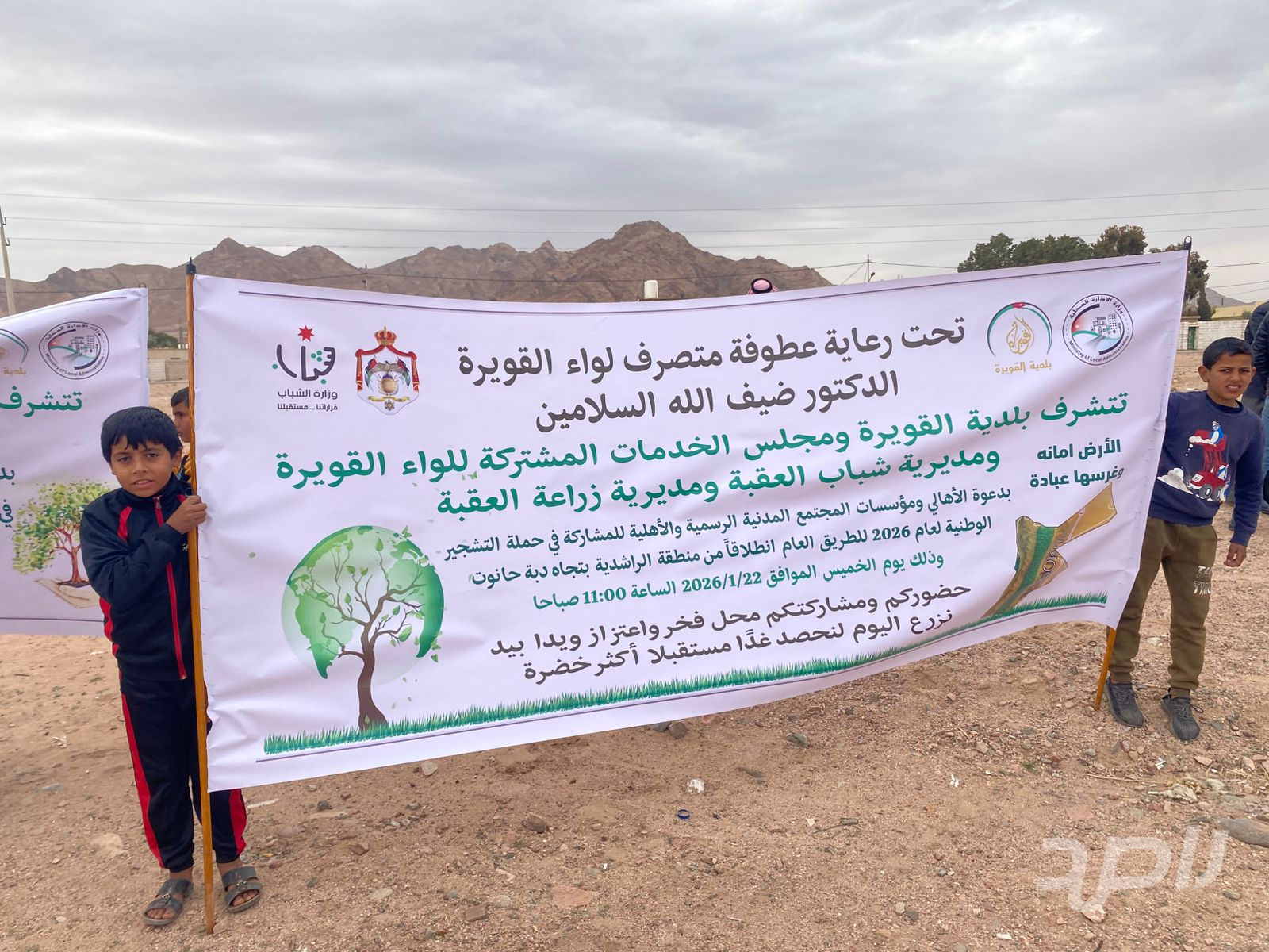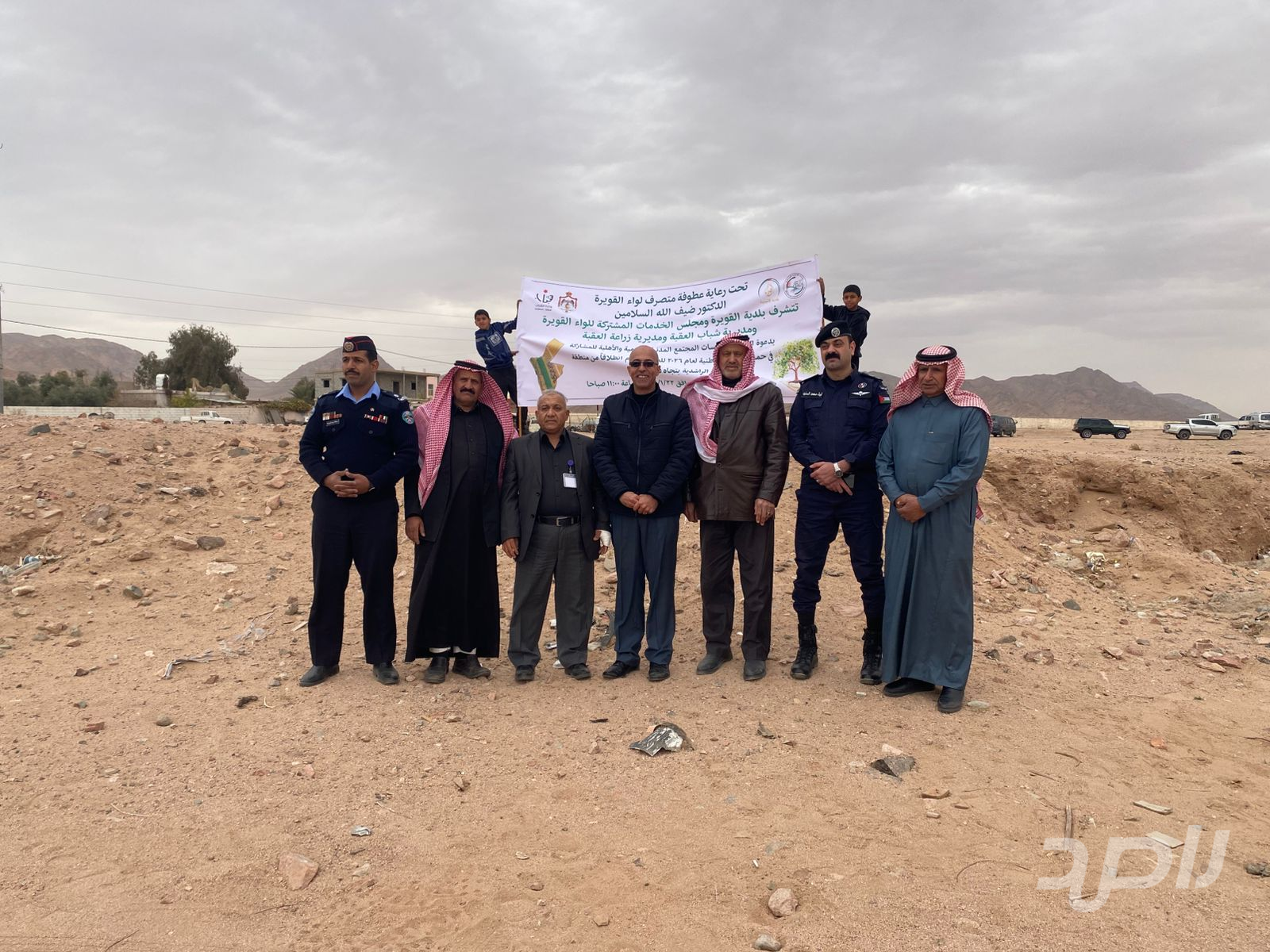 القويرة - الخميس 22 كانون الثاني 2026 - فواز القدمان - في تجسيد عملي لمعنى المسؤولية المجتمعية والعمل المستمر لخدمة البيئة، نفذت بلدية القويره بالتعاون مع كافة مؤسسات المجتمع المحلي، أعمال تشجير وزراعة مكثفة كجزء من الحملة الوطنية للتشجير لعام 2026. وقد رعى الفعالية عطوفة متصرف لواء القويره الدكتور ضيف الله السلامين، بمشاركة واسعة من مختلف القطاعات.