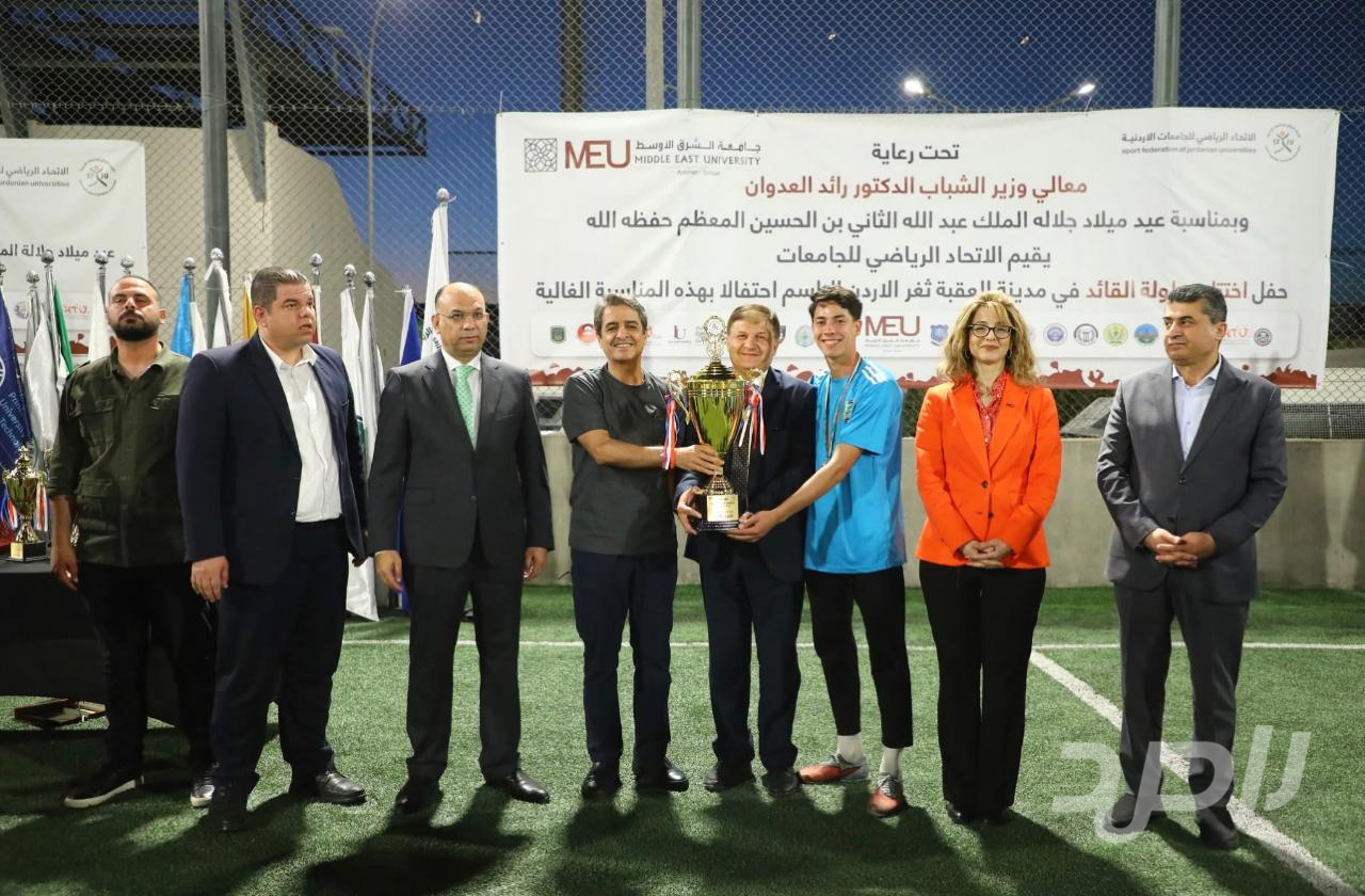 وجرى التتويج تحت رعاية معالي الدكتور رائد العدوان وزير الشباب، وذلك في إطار حرص الوزارة على دعم الرياضة الجامعية وتعزيز مشاركة الشباب في مختلف البطولات والمسابقات.