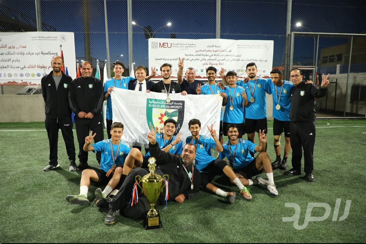 توّج فريق كرة القدم في جامعة البلقاء التطبيقية بطلاً لبطولة الجامعات الأردنية في خماسي كرة القدم، بعد فوزه المستحق على فريق جامعة البترا بنتيجة (9–2) في المباراة النهائية، ضمن منافسات بطولة القائد.