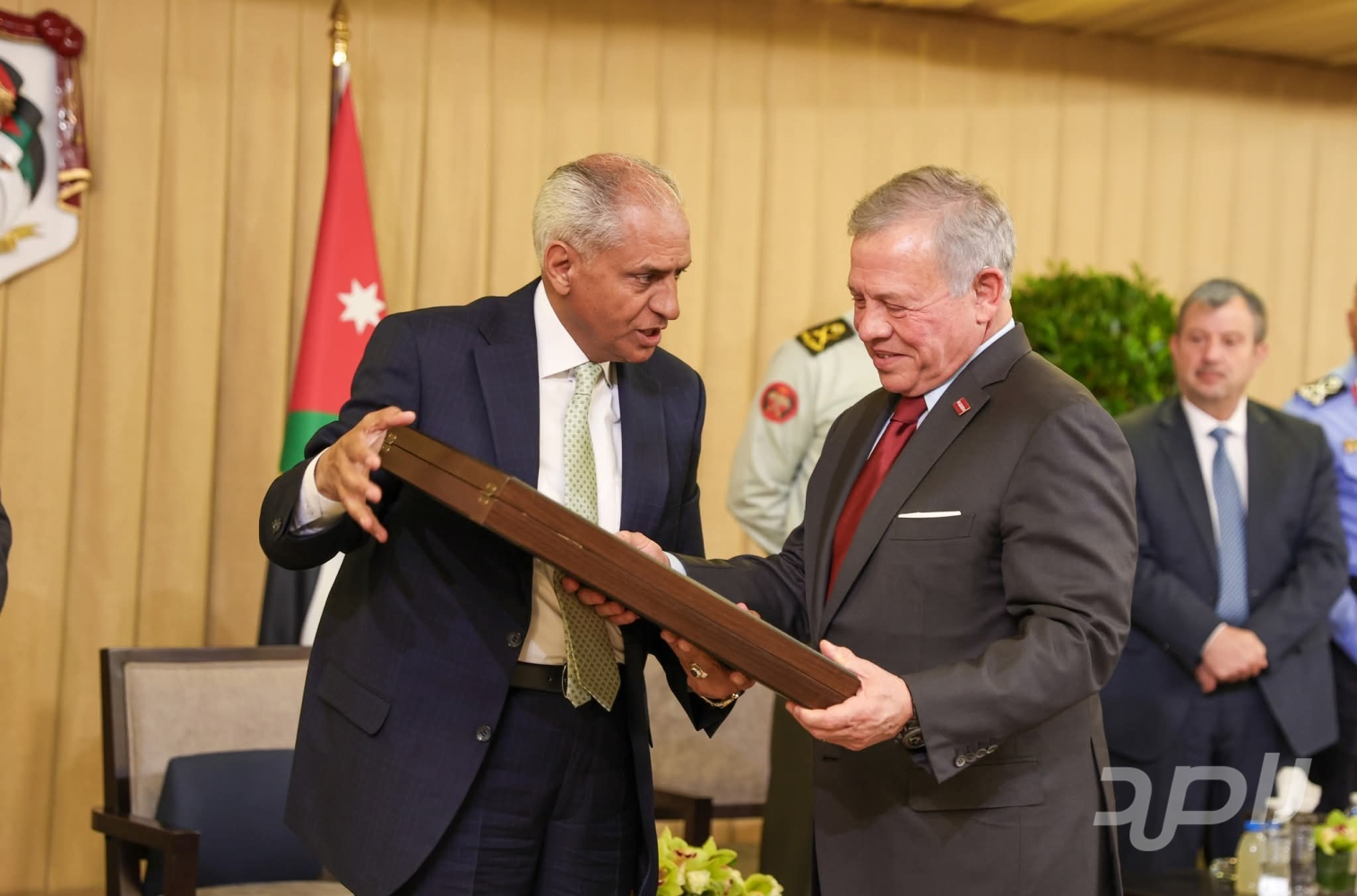 وحضر اللقاء رئيس الديوان الملكي الهاشمي يوسف حسن العيسوي، ورئيس هيئة الأركان المشتركة اللواء الركن يوسف أحمد الحنيطي، ومدير المخابرات العامة اللواء أحمد حسني، ومدير الأمن العام اللواء الدكتور عبيدﷲ المعايطة.