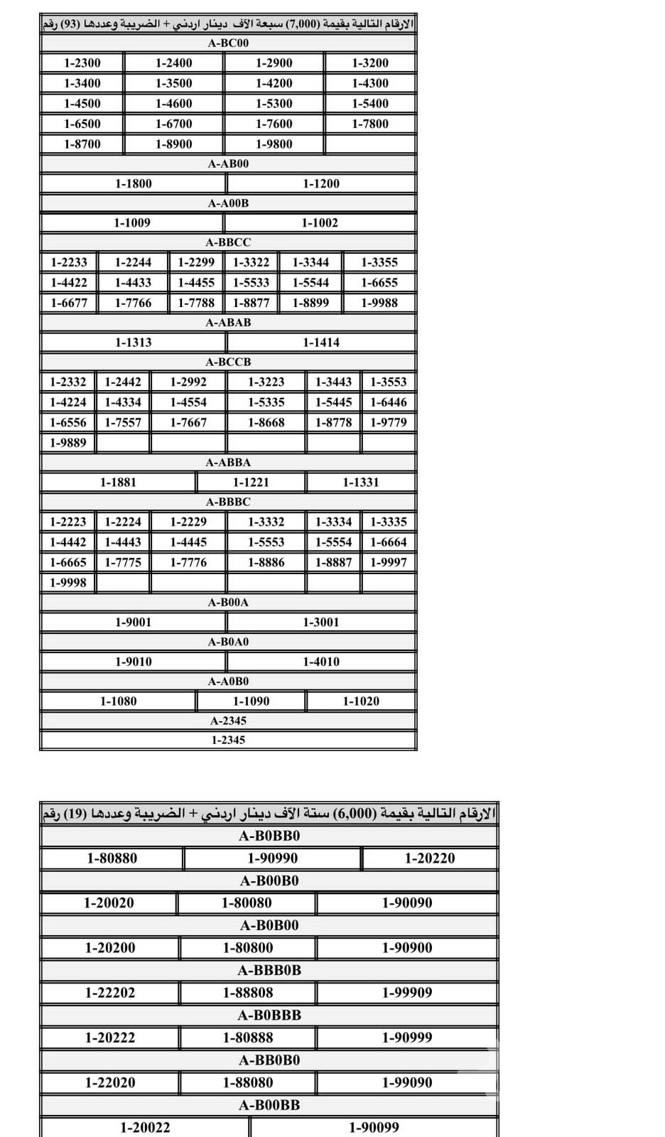 إدارة ترخيص السواقين والمركبات تطرح أرقاماً مميزة للبيع المباشر على بوابتها