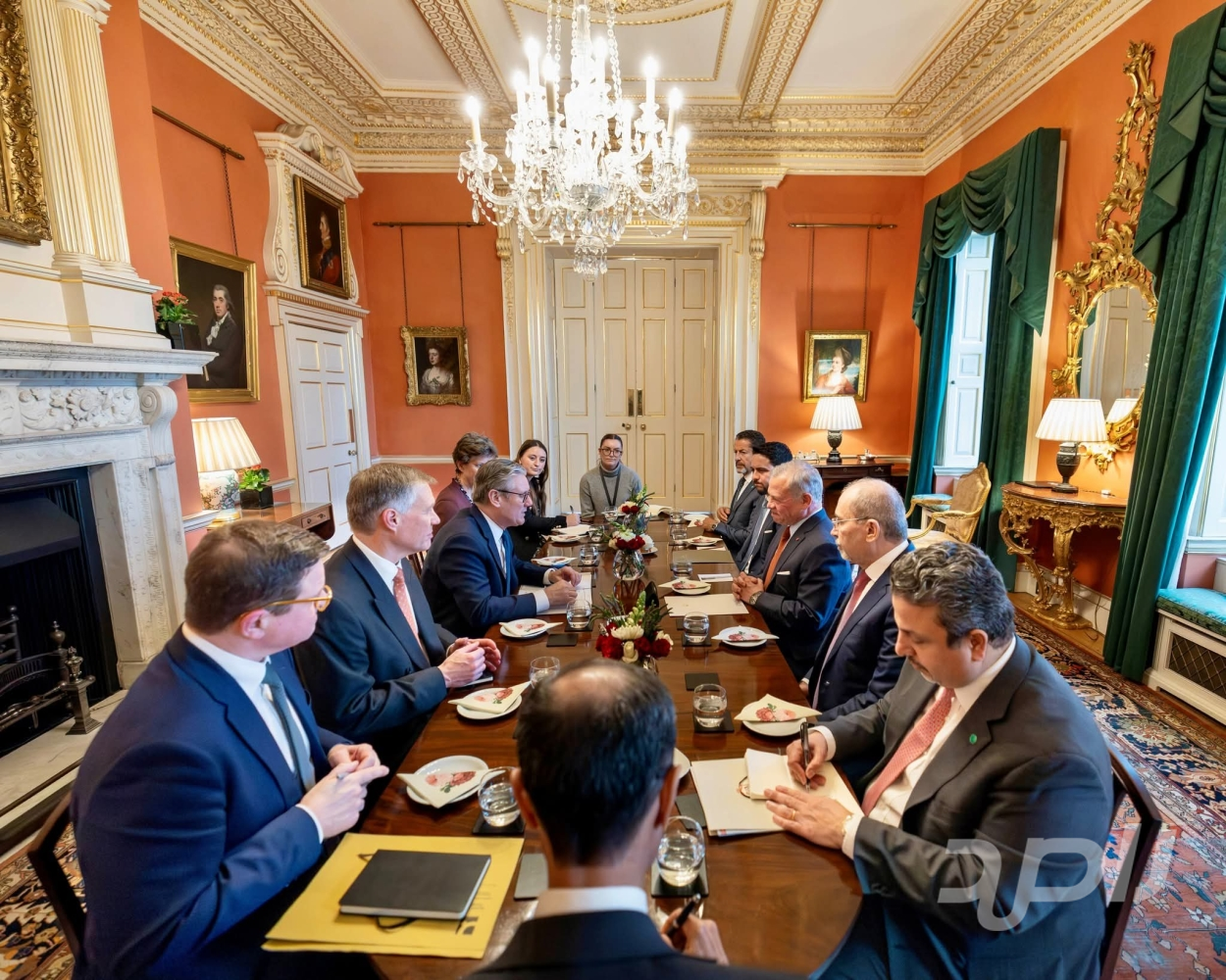 وحضر اللقاء نائب رئيس الوزراء ووزير الخارجية وشؤون المغتربين أيمن الصفدي، ومدير مكتب جلالة الملك، المهندس علاء البطاينة، وسفير الأردن لدى بريطانيا منار الدباس.