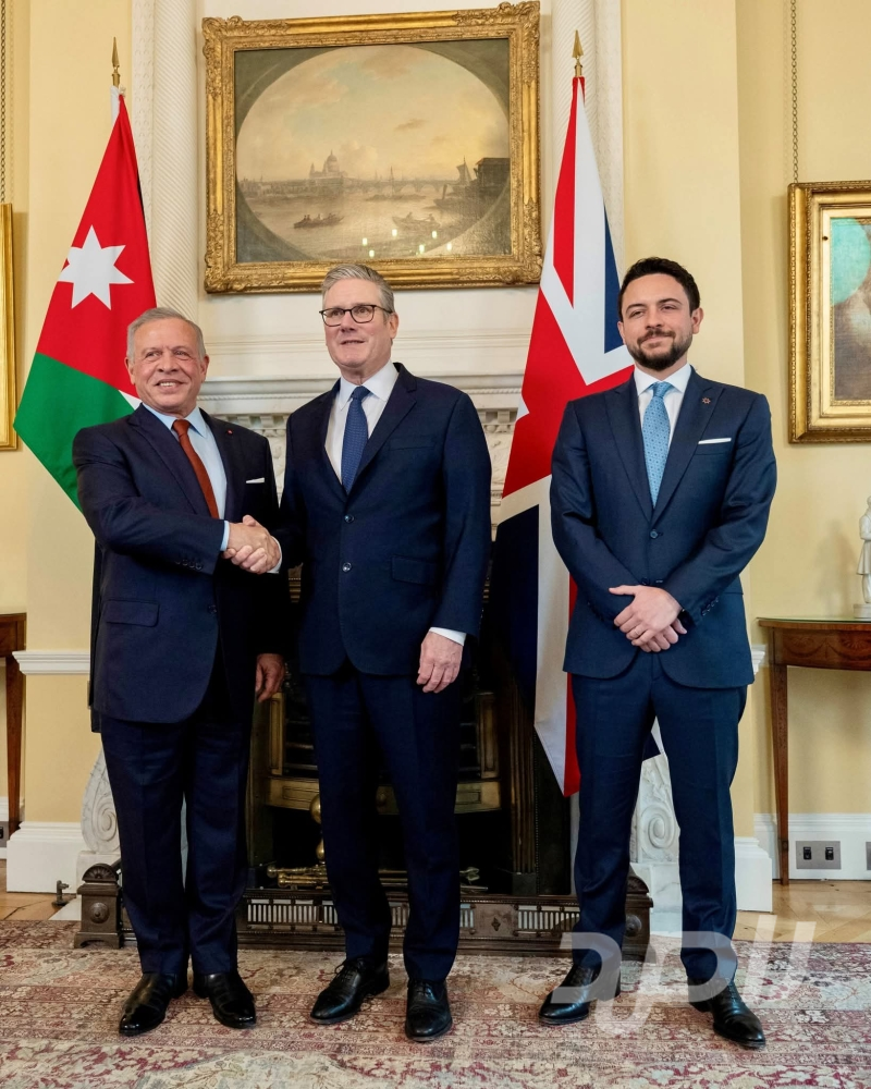 التقى جلالة الملك عبدﷲ الثاني، اليوم الاثنين، رئيس الوزراء البريطاني السير كير ستارمر في لندن، بحضور سمو الأمير الحسين بن عبدﷲ الثاني ولي العهد.