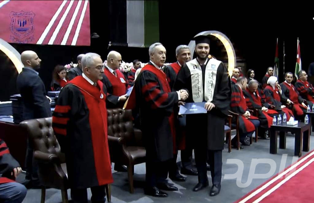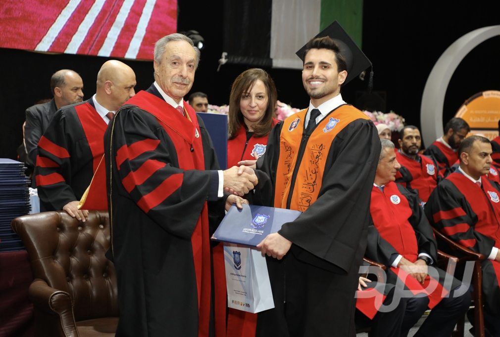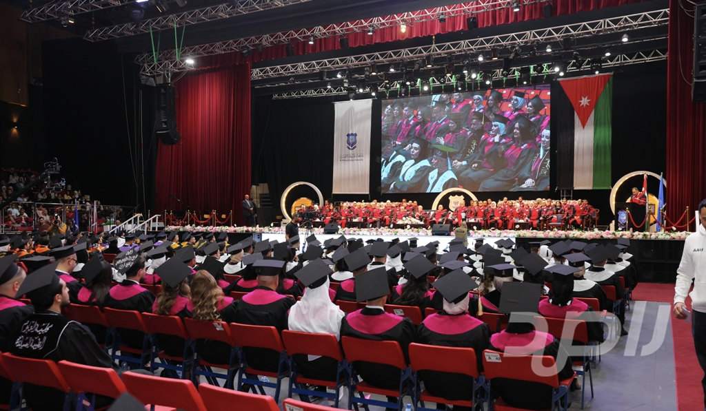 رعى دولة الاستاذ عبدالكريم الكباريتي رئيس مجلس أمناء جامعة عمان الاهلية مساء أمس 16-2-2026 على مسرح الأرينا احتفال الجامعة لليوم الثاني بتخريج طلبتها للفصل الاول 2025-2026 من الفوج (33) لكليات : " الهندسة، الصيدلة، تقنية المعلومات، التمريض، العمارة والتصميم، والعلوم الطبية المساندة والتكنولوجيا الزراعية " ، بحضور الاستاذ الدكتور ساري حمدان رئيس الجامعة ، والاستاذ عمر الحوراني نائب رئيس هيئة المديرين ، وعدد من أعضاء مجلس الأمناء ، ونائب رئيس الجامعة الاستاذ الدكتور احمد حمدان " عميد كلية طب الاسنان " ، ومساعد الرئيس لشؤون الاعتماد والجودة والتخطيط الدكتور إياد شعبان، والسادة العمداء ، وأعضاء الهيئة التدريسية ، وعدد من أعضاء الهيئة الإدارية ، وحشد كبير من ذوي الطلبة الخريجين والمدعوين .