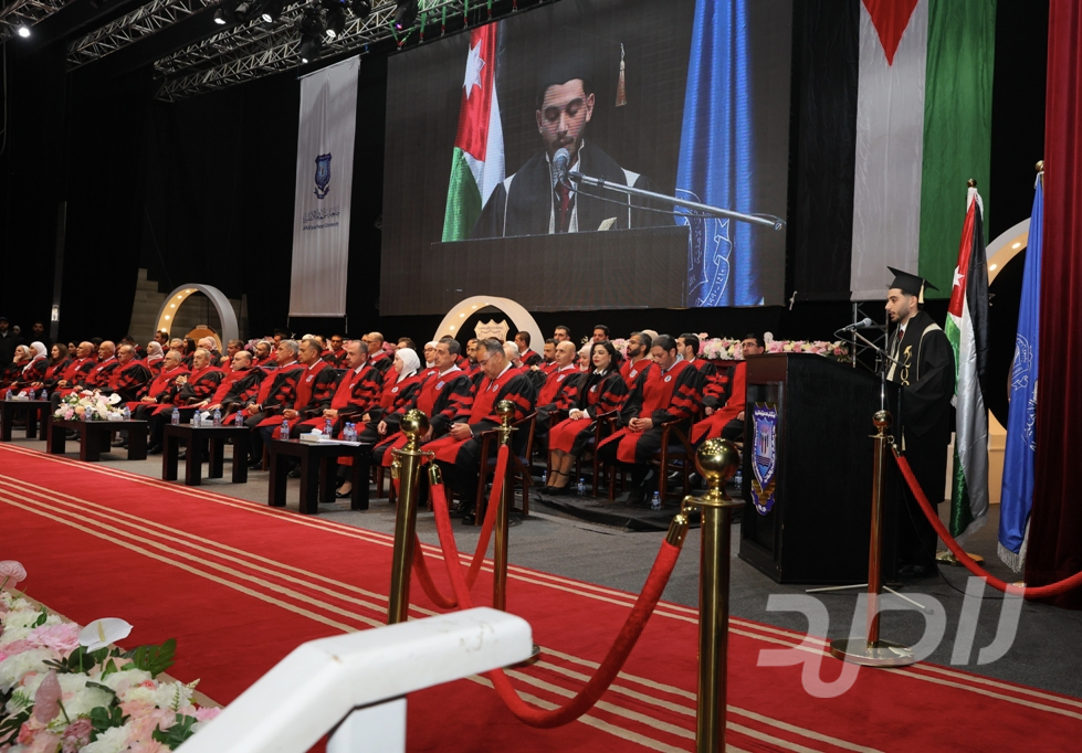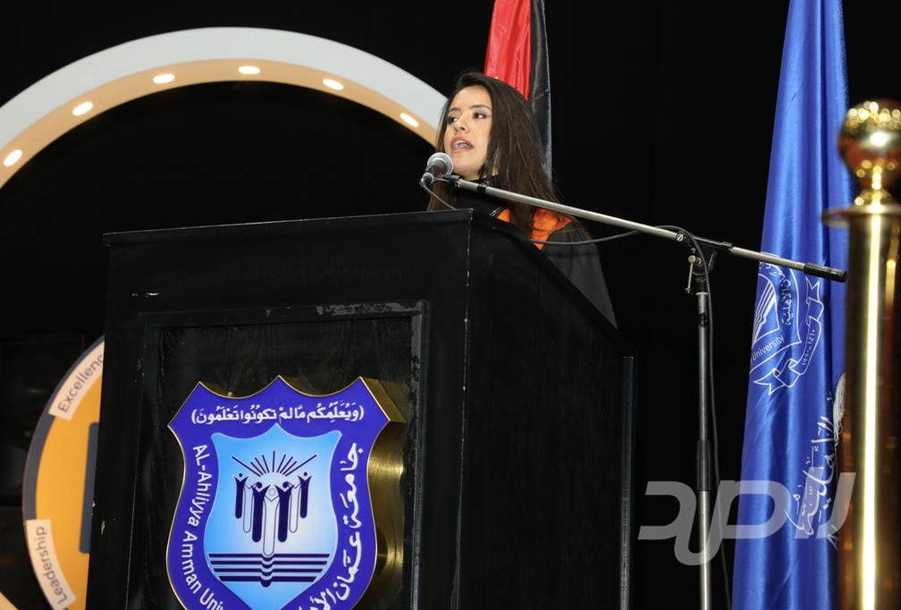 أقف أمامكم اليوم ممثلاً لزملائي الخريجين، ممتناً لهذه اللحظة العظيمة، متقدماً بجزيل الشكر لدولة الرئيس عبد الكريم الكباريتي رئيس مجلس الأمناء، وللأستاذ الدكتور ساري حمدان رئيس جامعة عمّان الأهلية، ولعطوفة الدكتور ماهر الحوراني رئيس هيئة المديرين، والسادة عمداء الكليات وأعضاء الهيئتين التدريسية والإدارية، على ما بذلوه من جهد ودعم حتى نصل إلى هذا اليوم.
