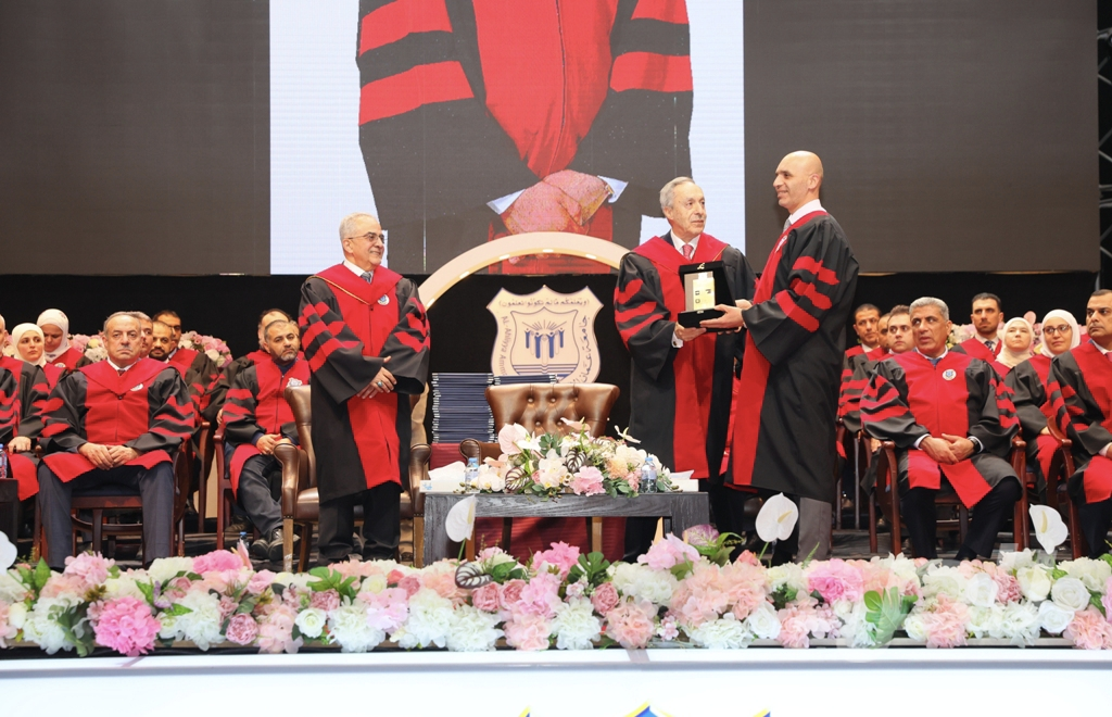 ثم قام راعي الحفل والى جانبه رئيس الجامعة بتكريم الدكتور مراد المعايطة، تقديرًا لتميّزه في مجال البحث العلمي وإسهاماته القيمة في خدمة المسيرة الأكاديمية.