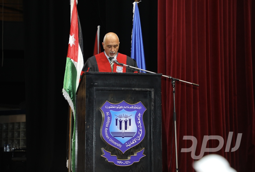 واختتم كلمته بالقول : إننا في جامعة عمّان الأهلية، ونحن نحتفي بتخريج فوجٍ جديد من أبنائنا وبناتنا، نؤكد فخرنا واعتزازنا بقيادتنا الهاشمية الحكيمة، وبالمواقف الوطنية المشرفة لصاحب الجلالة الملك عبد الله الثاني ابن الحسين، حفظه الله، والتي تجسّد إرادةً وطنيةً راسخة تعبّر عن وحدة الأردنيين على اختلاف أصولهم ومنابتهم.وفقنا الله جميعاً لخدمةِ جامعتِنا وخدمةِ أردننا الغالي في ظل حضرة صاحب الجلالة الهاشمية الملك عبد الله الثاني ابن الحسين وولي عهده الأمين.